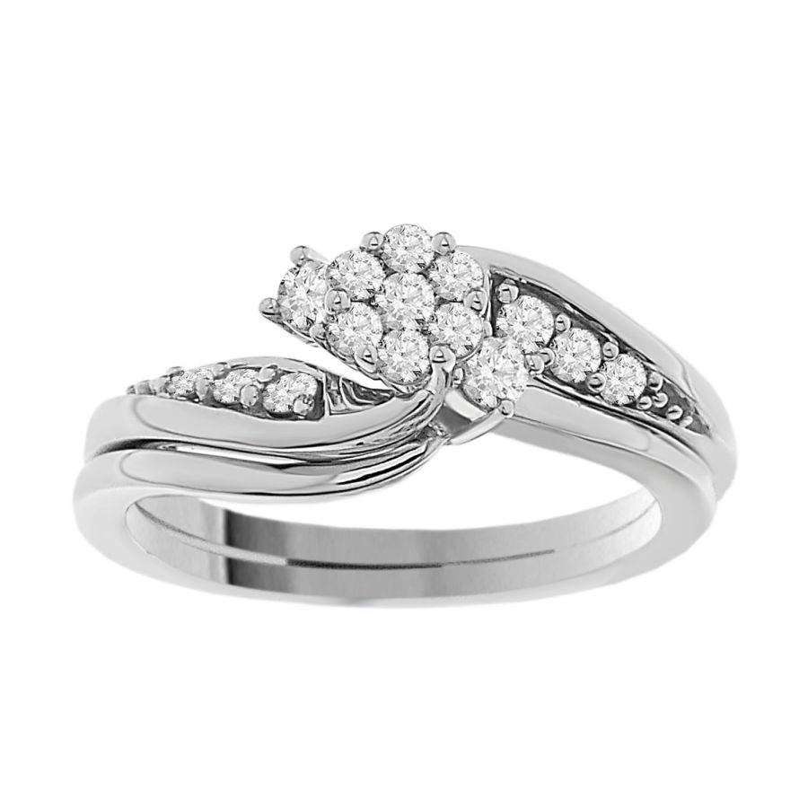 LADIES BRIDAL SET 0.25CT ROUND DIAMOND 10K WHITE GOLD