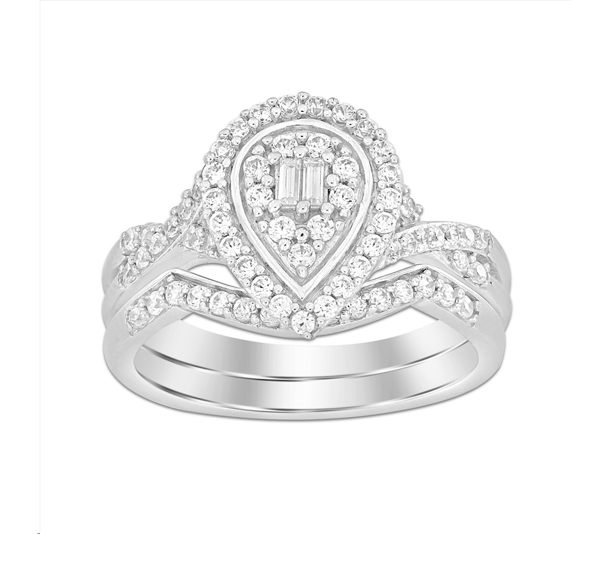 LADIES RING 0.40CT ROUND/BAGUETTE DIAMOND 10K WHITE GOLD