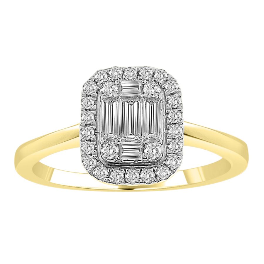 LADIES RING 0.40CT ROUND/BAGUETTE DIAMOND 14K YELLOW GOLD