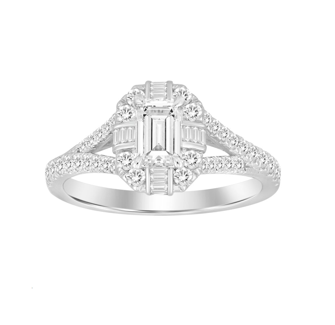 LADIES RING 0.50CT EMERALD/ROUND/BAGUETTE DIAMOND 14K WHITE GOLD (CENTER STONE 0.50 CT EMERALD DIAMOND)
