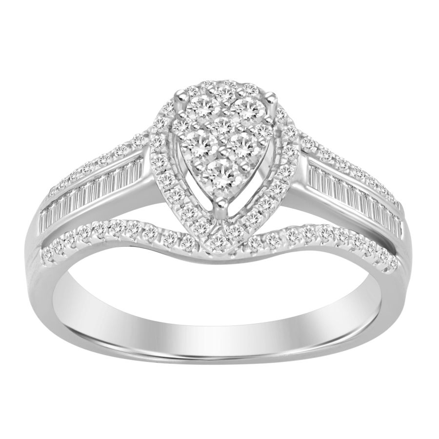 LADIES RING 0.50CT ROUND/BAGUETTE DIAMOND 10K WHITE GOLD