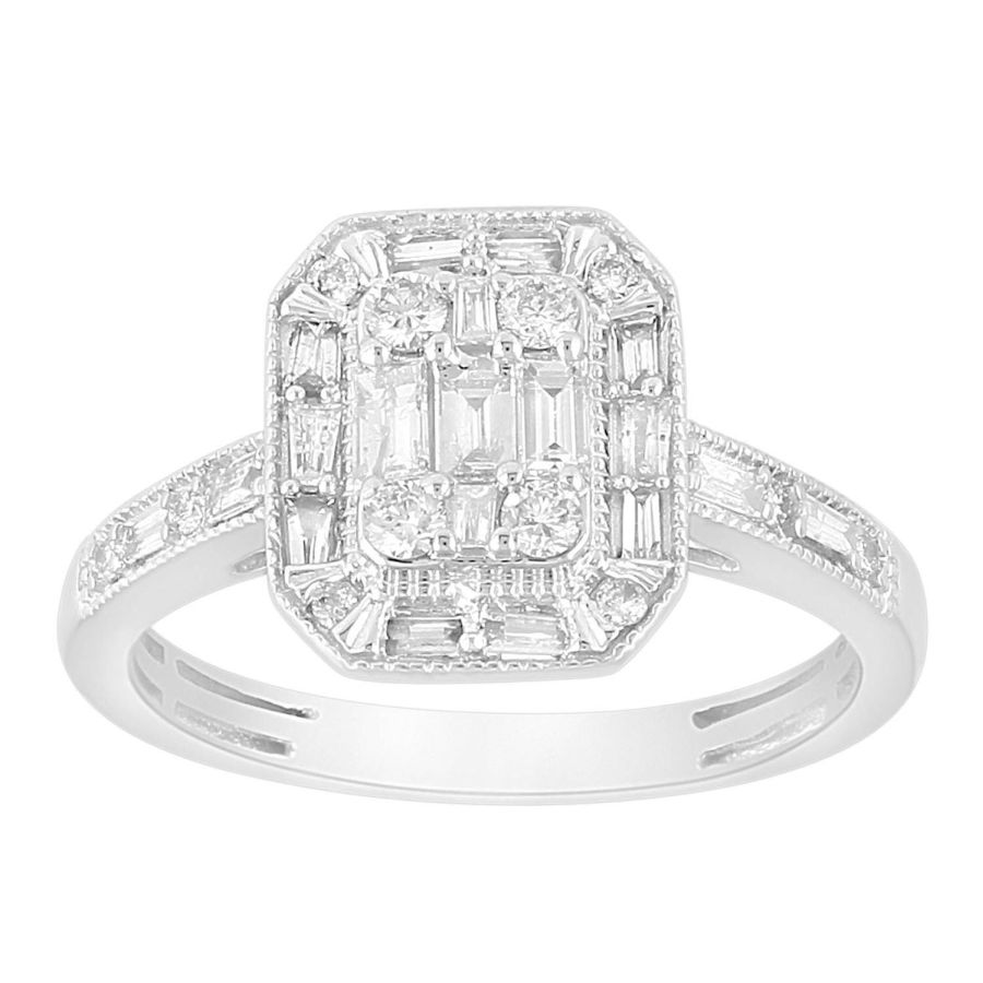 LADIES RING 0.50CT ROUND/BAGUETTE DIAMOND 10K WHITE GOLD