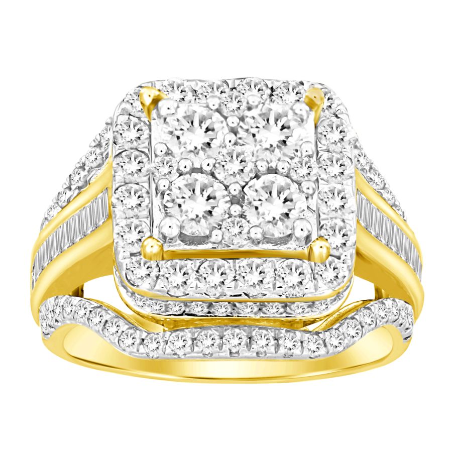 LADIES RING 0.50CT ROUND/BAGUETTE DIAMOND 10K YELLOW GOLD