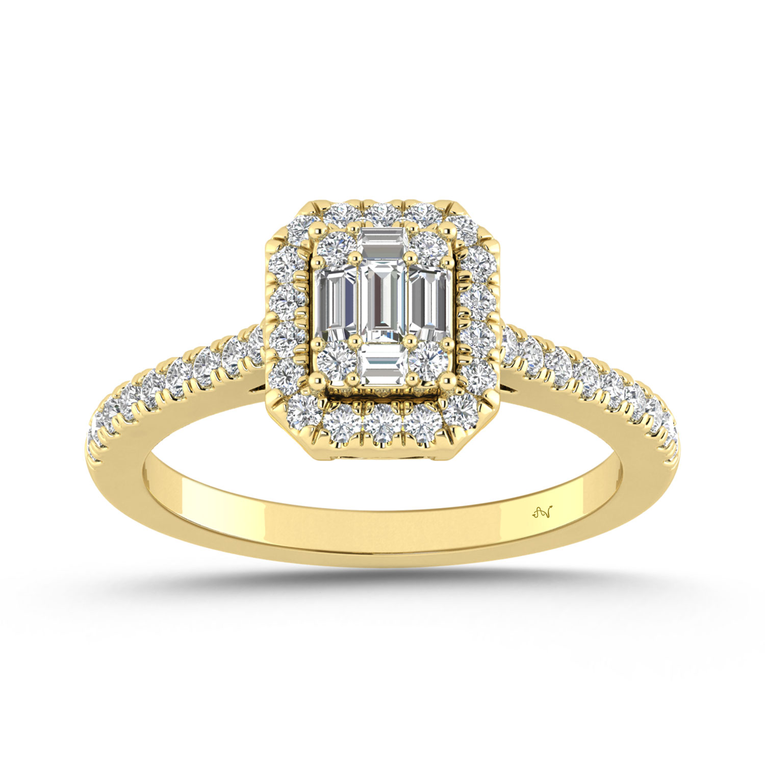 LADIES RING 0.50CT ROUND/BAGUETTE DIAMOND 10K YELLOW GOLD