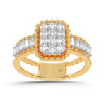 LADIES RING 0.50CT ROUND/BAGUETTE DIAMOND 10K YELLOW GOLD