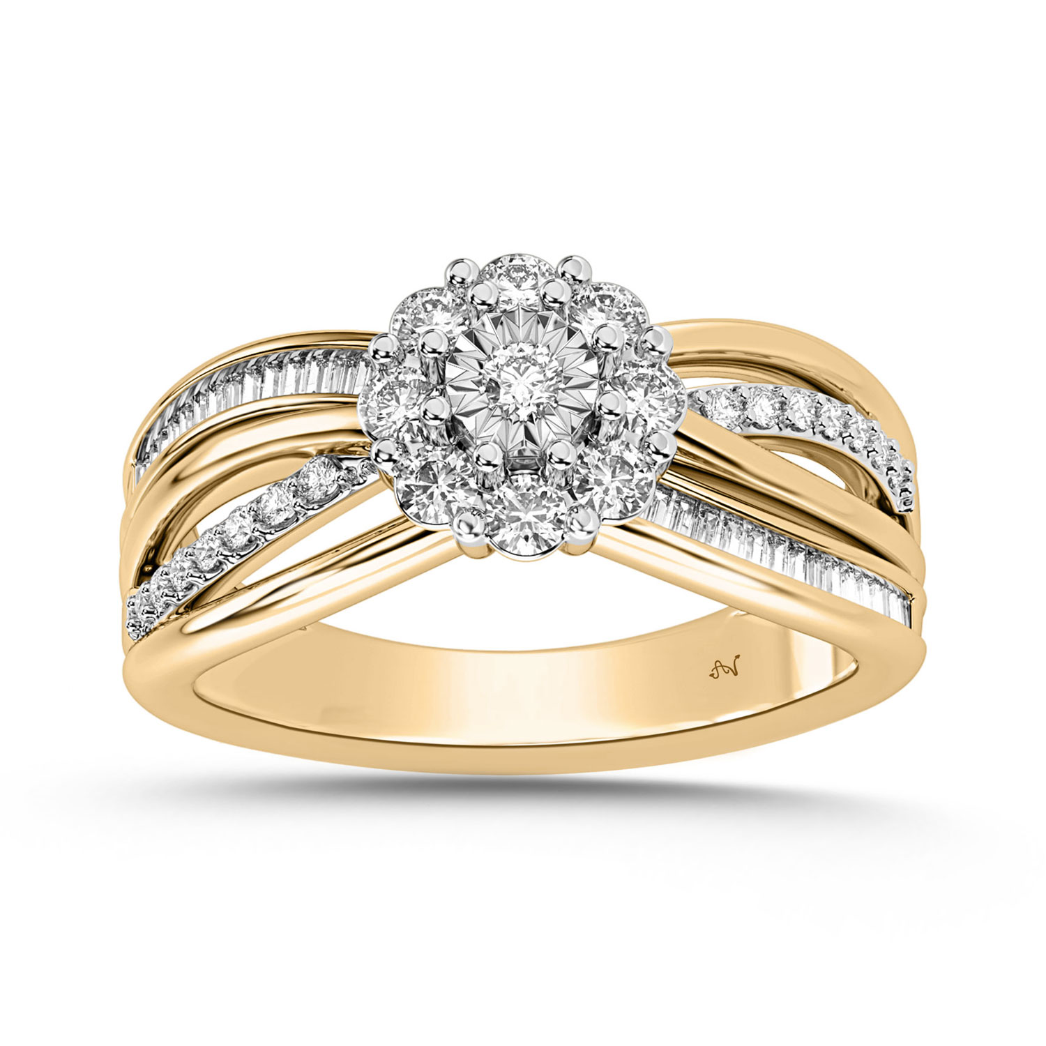 LADIES RING 0.50CT ROUND/BAGUETTE DIAMOND 10K YELLOW GOLD