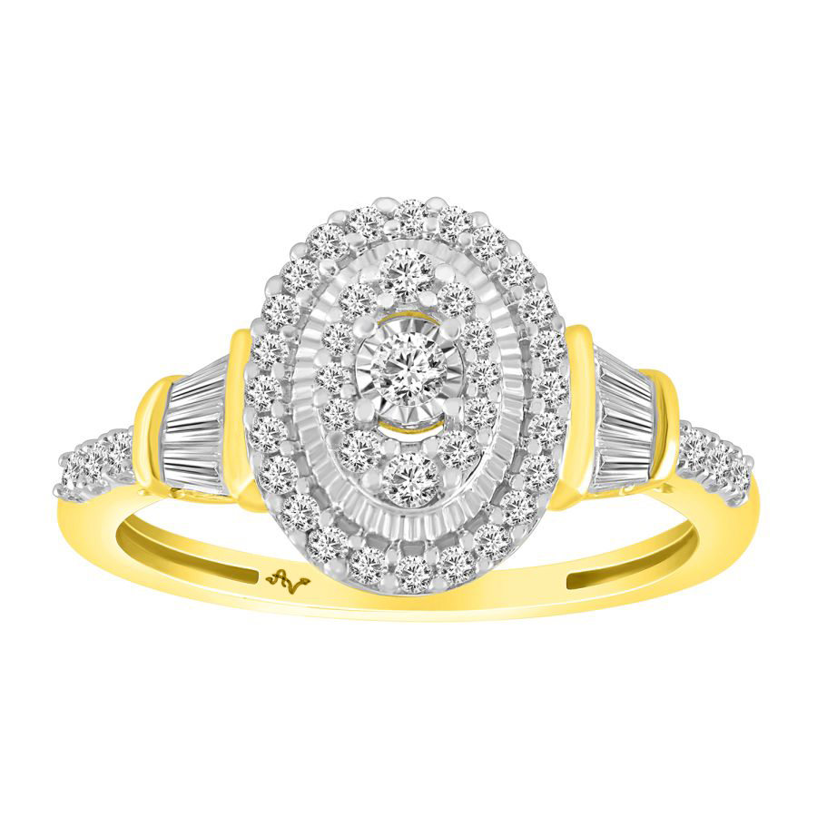 LADIES RING 0.50CT ROUND/BAGUETTE DIAMOND 10K YELLOW GOLD
