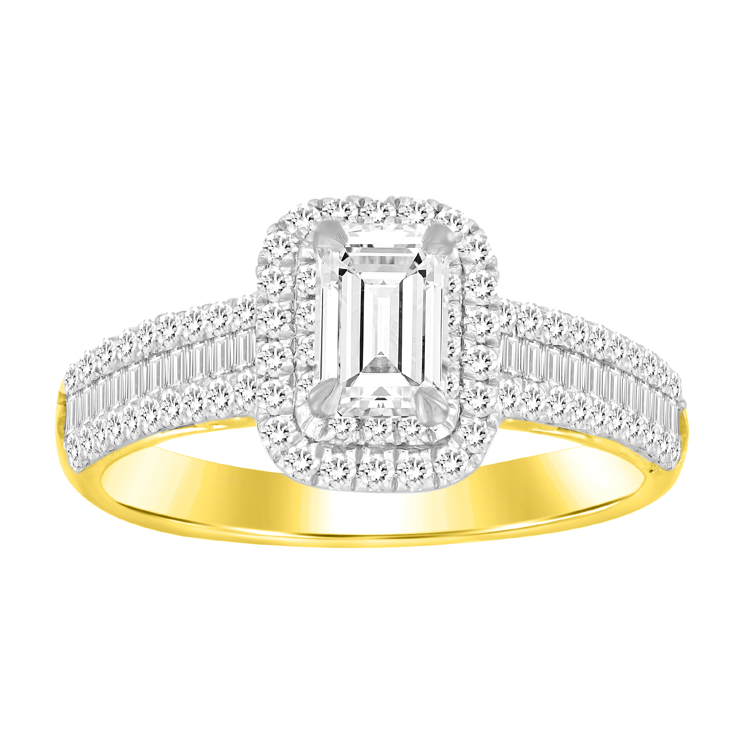 LADIES RING 0.50CT ROUND/BAGUETTE/EMERALD DIAMOND 14K YELLOW GOLD(SI QUALITY) (CENTER STONE 0.50 CT EMERALD DIAMOND)