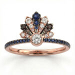 LADIES RING 0.50CT ROUND/DARK BROWN/BLUE DIAMOND 14K ROSE GOLD