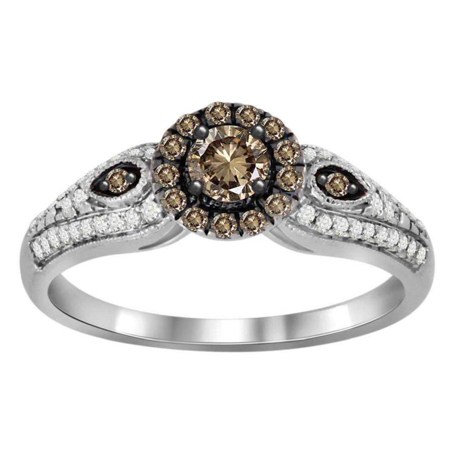 LADIES RING 0.50CT ROUND DARK BROWN DIAMOND 14K WHITE GOLD