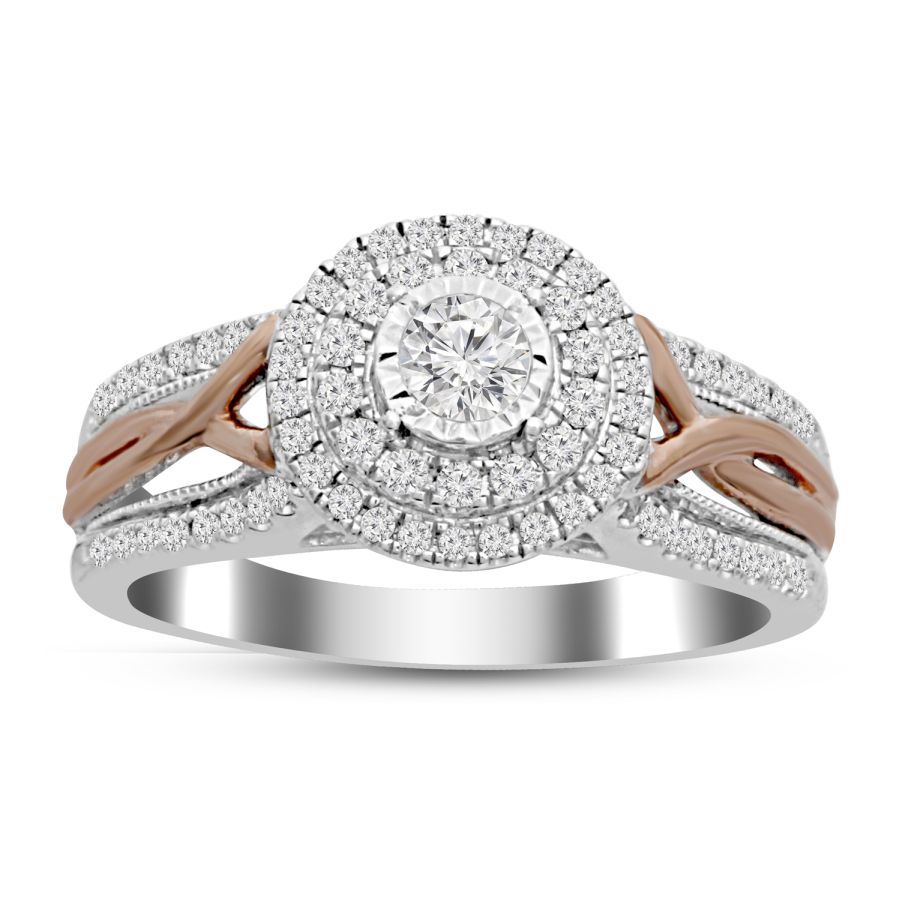 LADIES RING 0.50CT ROUND DIAMOND 14K WHITE/ROSE GOLD
