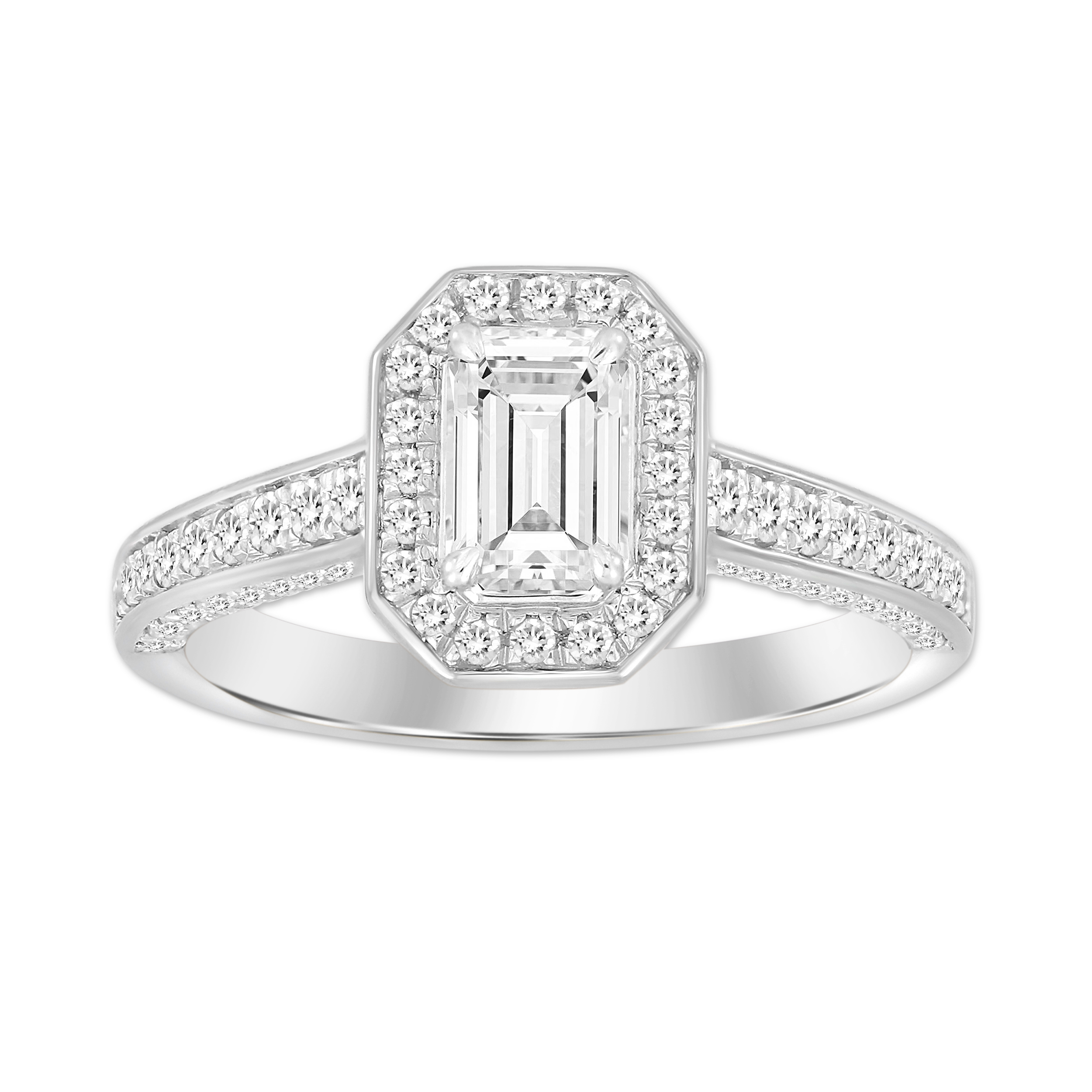 LADIES RING 0.50CT ROUND/EMERALD DIAMOND 14K WHITE GOLD (CENTER STONE 0.50 CT EMERALD DIAMOND)
