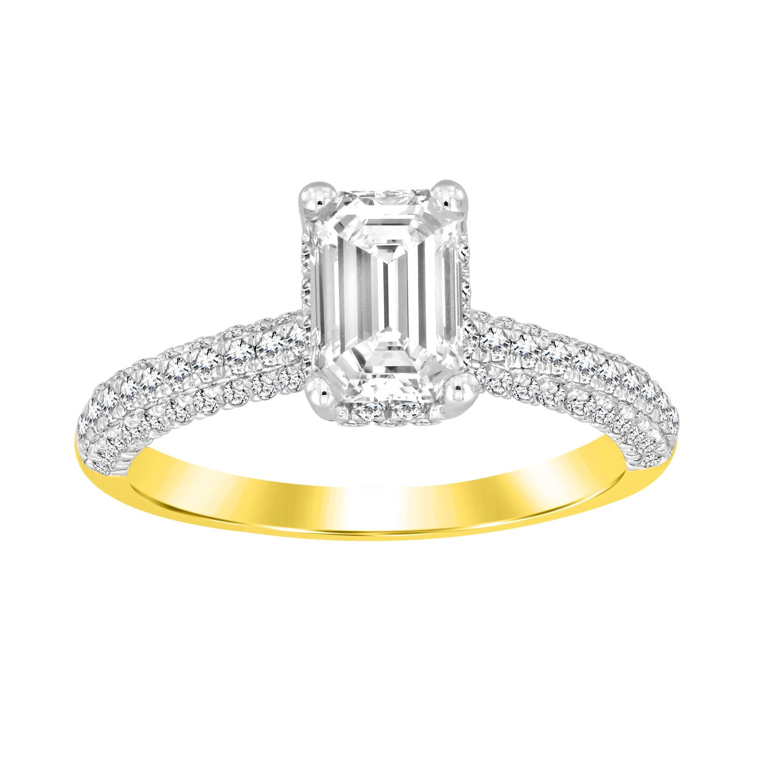 LADIES RING 0.50CT ROUND/EMERALD DIAMOND 14K YELLOW GOLD(SI QUALITY) (CENTER STONE 0.75 CT EMERALD DIAMOND)