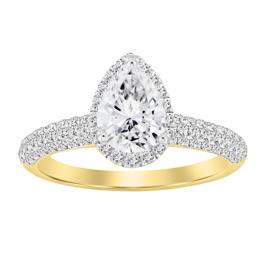 LADIES RING 0.50CT ROUND/PEAR DIAMOND 14K YELLOW GOLD(SI QUALITY) (CENTER STONE 0.75 CT PEAR DIAMOND)