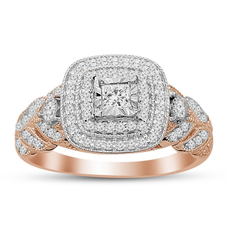 LADIES RING 0.50CT ROUND/PRINCESS DIAMOND 14K WHITE/ROSE GOLD