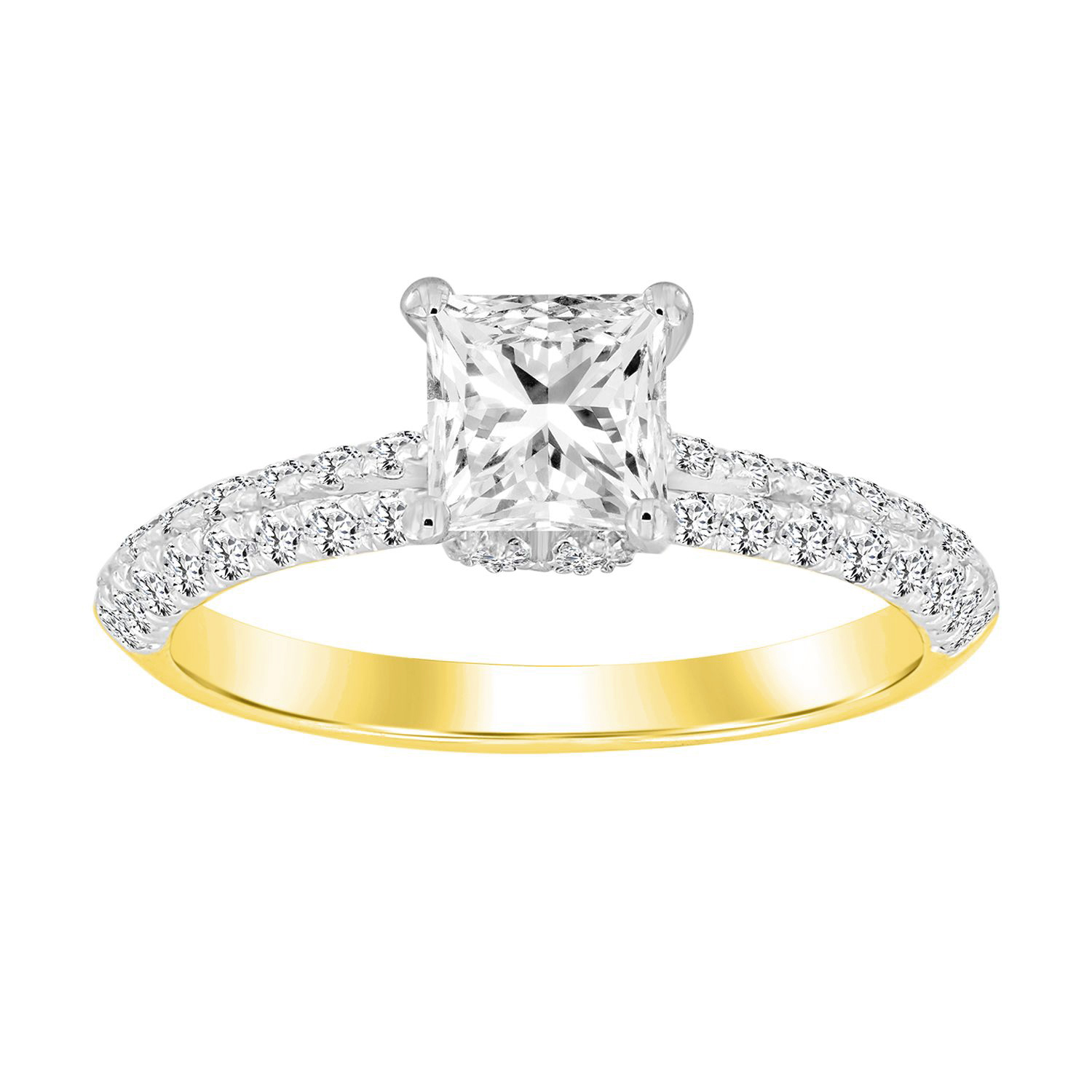 LADIES RING 0.50CT ROUND/PRINCESS DIAMOND 14K YELLOW GOLD(SI QUALITY) (CENTER STONE 0.75 CT PRINCESS DIAMOND)
