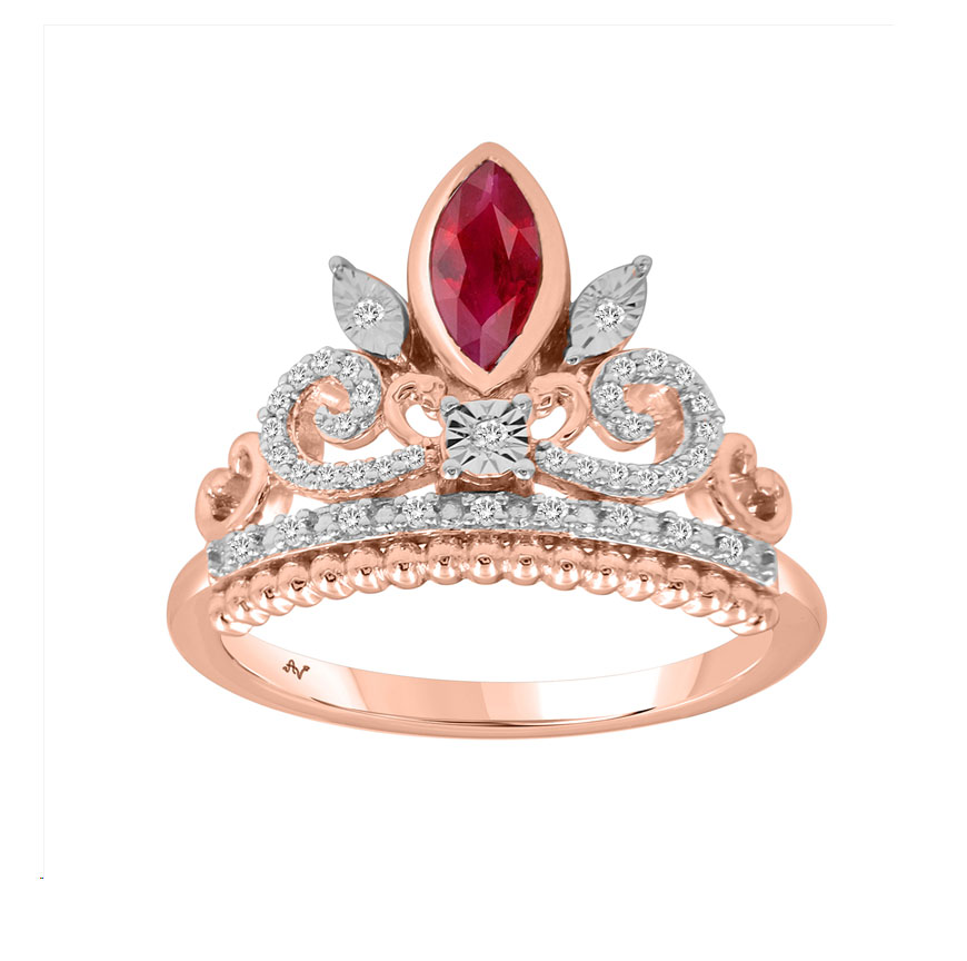 LADIES RING 0.50CT ROUND/RUBY/MARQUISE DIAMOND 14K ROSE GOLD (CENTER STONE MARQUISE RUBY-0.32CT)