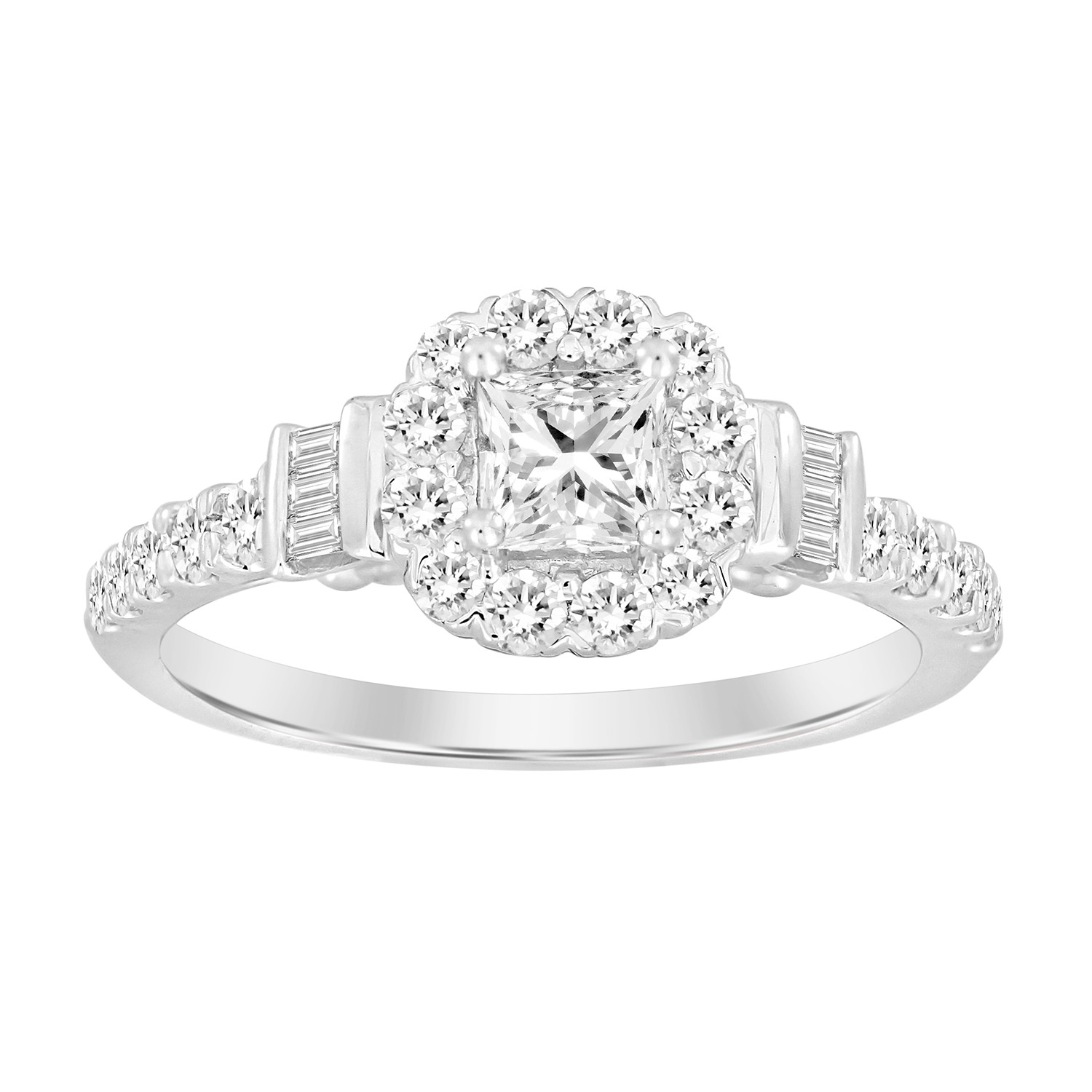 Home Rings LADIES RING 0.55CT ROUND/BAGUETTE DIAMOND 14K WHITE GOLD (CENTER STONE 0.30 CT PRINCESS DIAMOND)