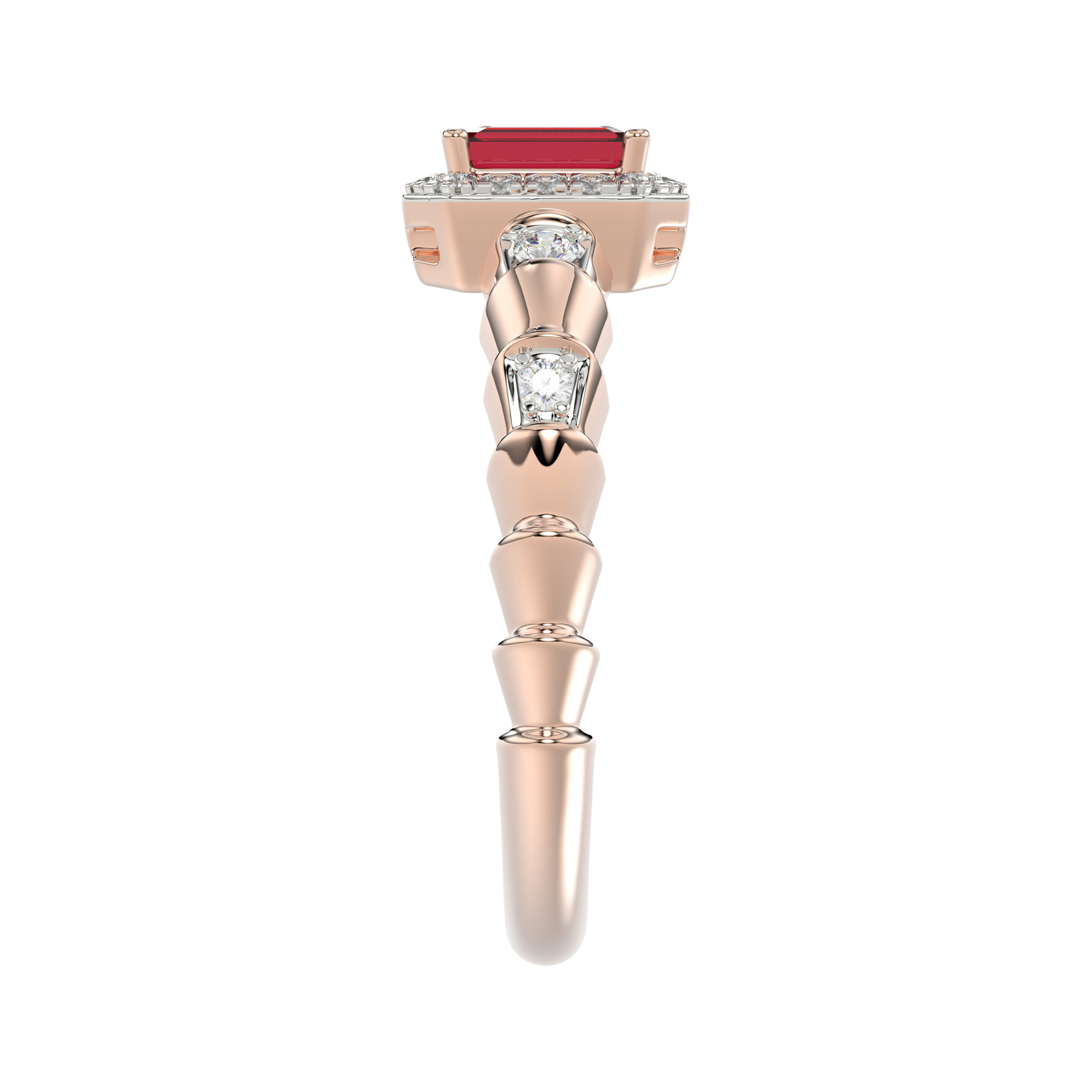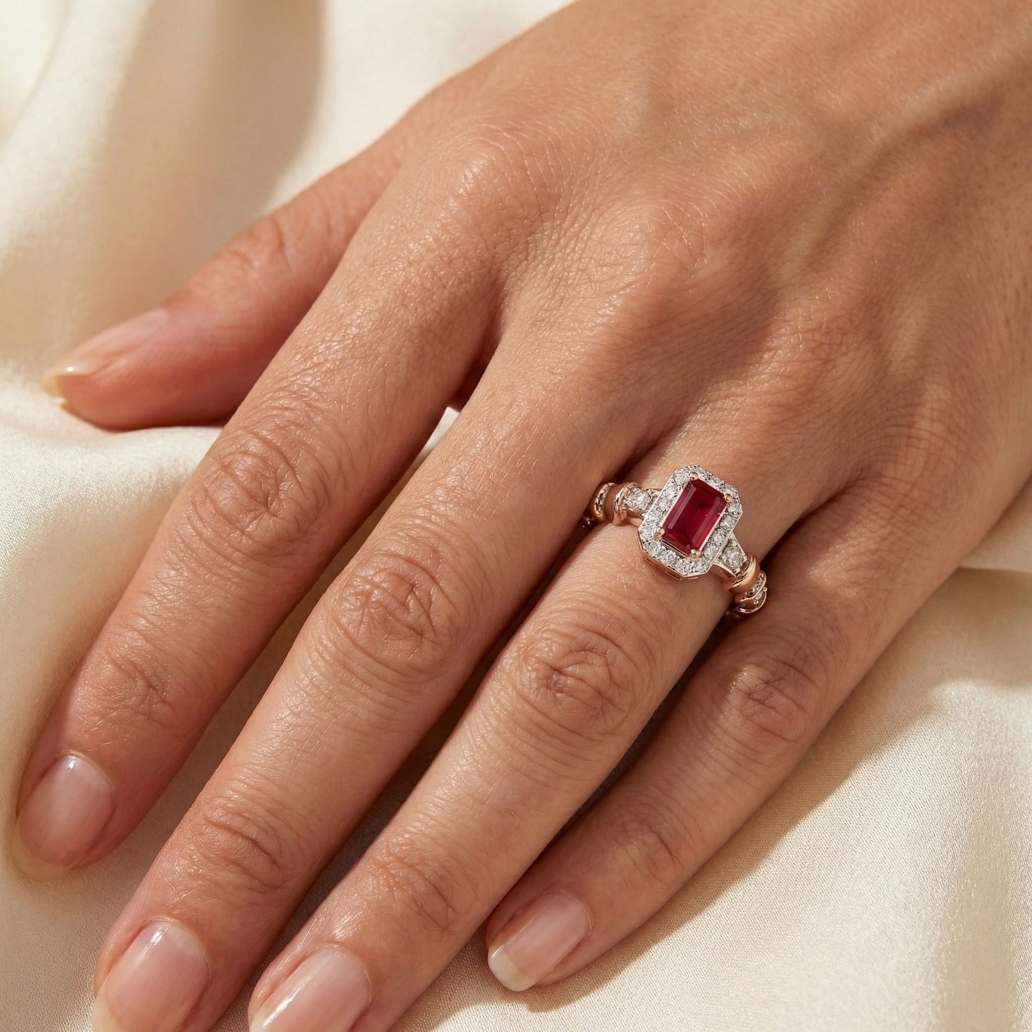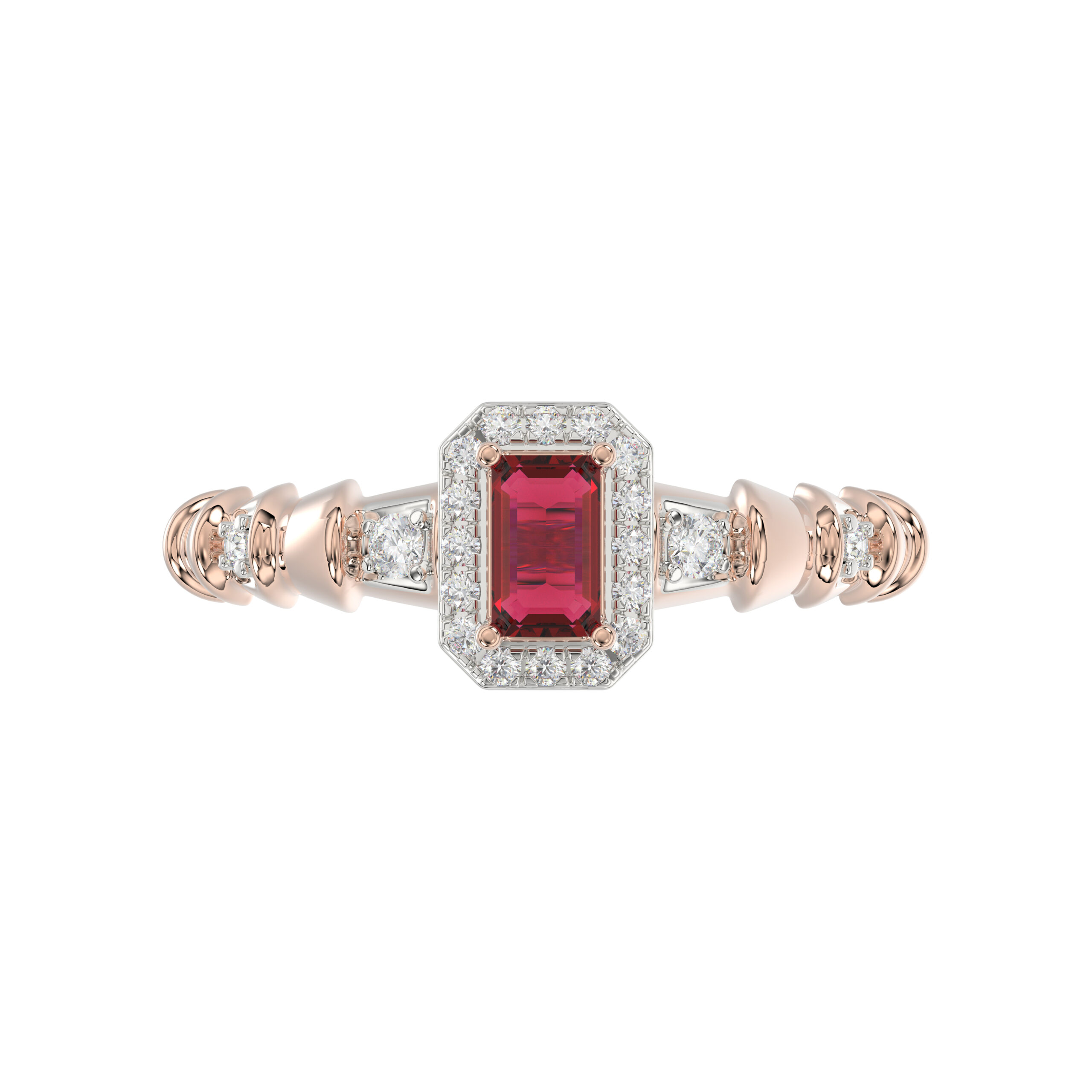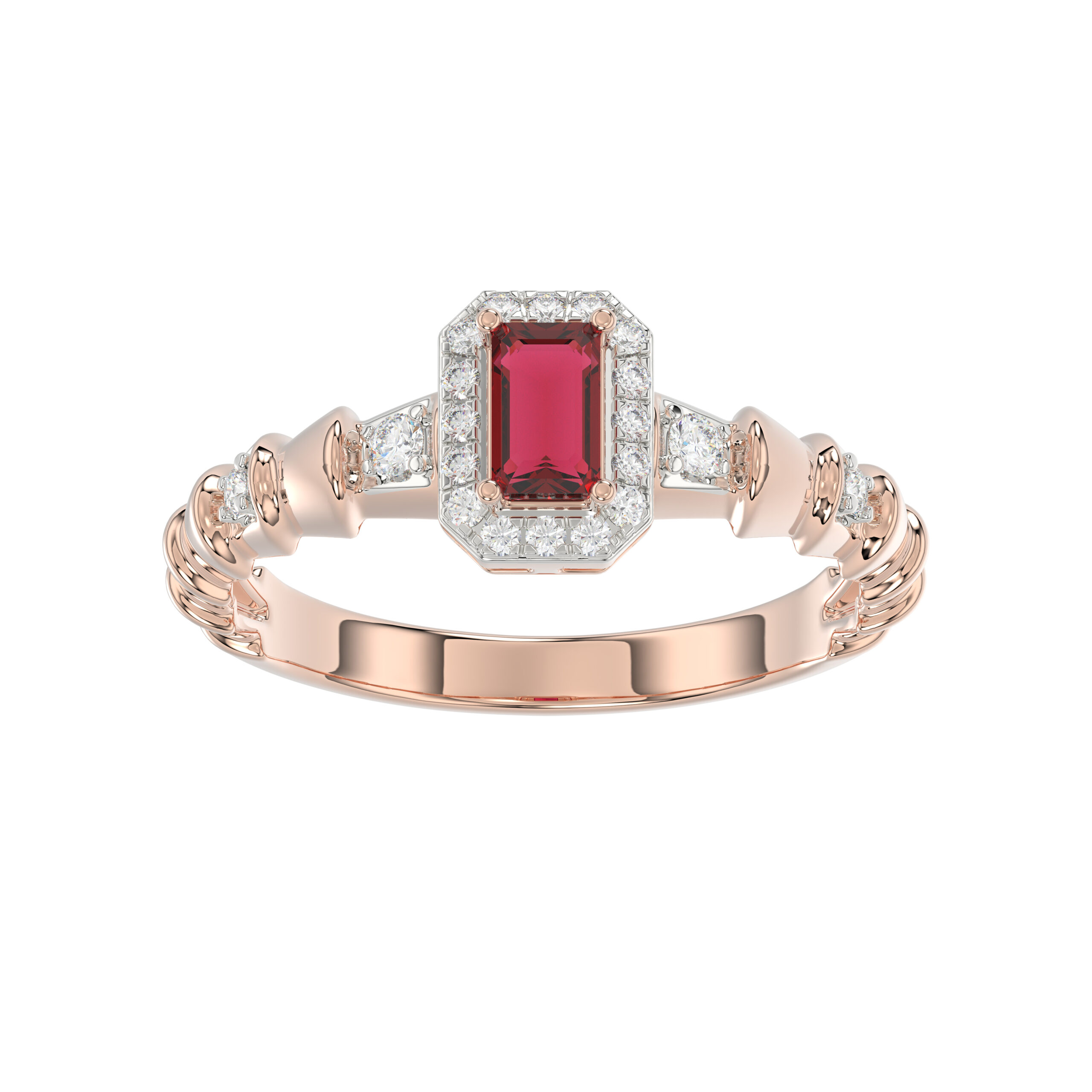 LADIES RING 0.55CT ROUND/EMERALD RUBY DIAMOND 14K ROSE GOLD (CENTER STONE 0.40CT EMERALD RUBY DIAMOND)