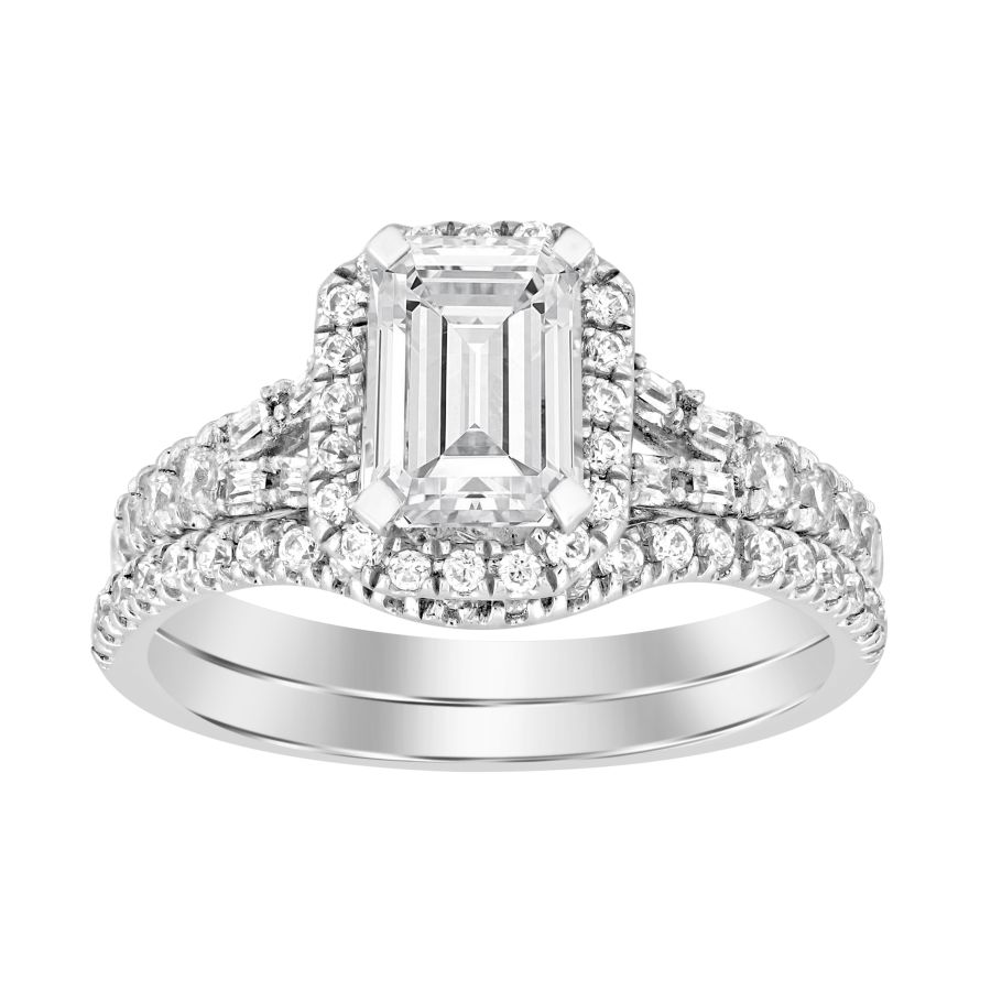 LADIES RING 0.65CT ROUND/EMERALD DIAMOND 14K WHITE GOLD (CENTER STONE 1.00CT EMERALD DIAMOND)