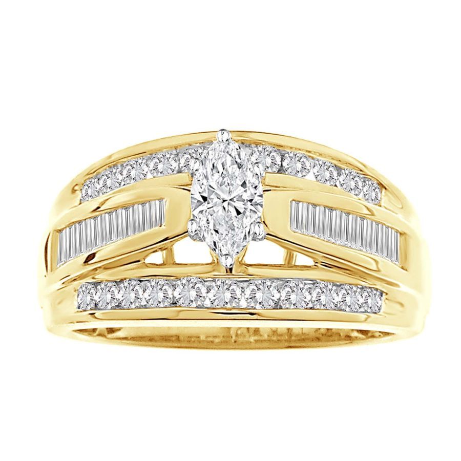 LADIES RING 0.70CT ROUND/MARQUISE/BAGUETTE DIAMOND 14K YELLOW GOLD