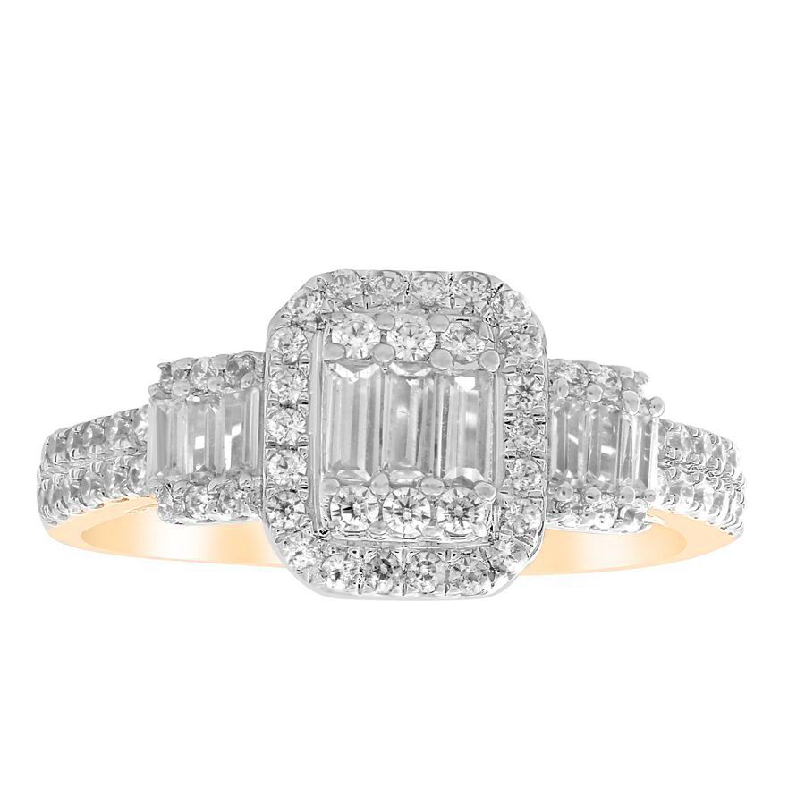 LADIES RING 0.75CT ROUND/BAGUETTE DIAMOND 14K YELLOW GOLD