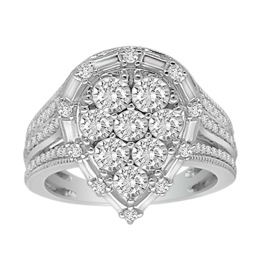 LADIES RING 0.75CT ROUND DIAMOND 10K WHITE GOLD