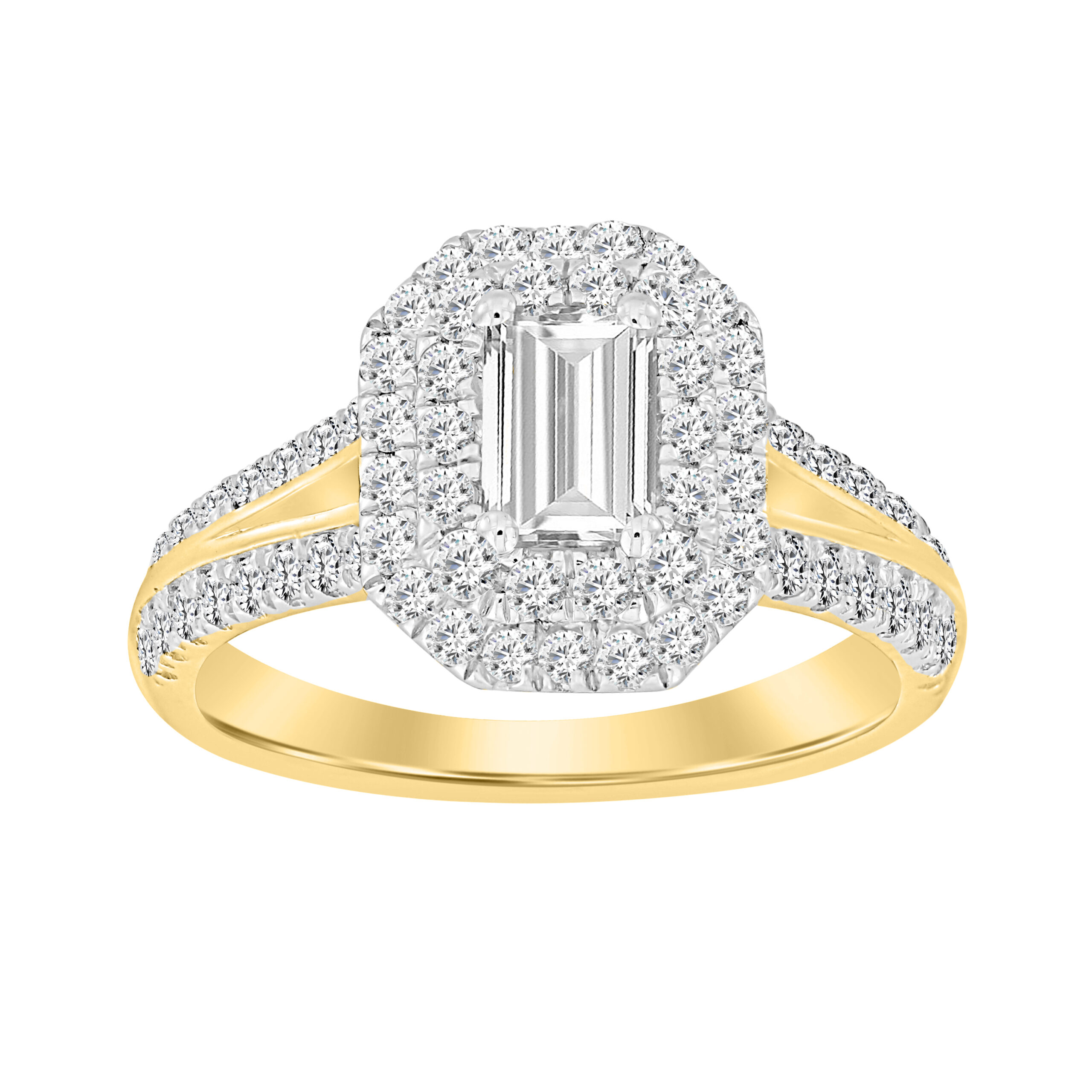 LADIES RING 0.75CT ROUND/EMERALD DIAMOND 14K YELLOW GOLD(SI QUALITY) (CENTER STONE 0.75 CT EMERALD DIAMOND)