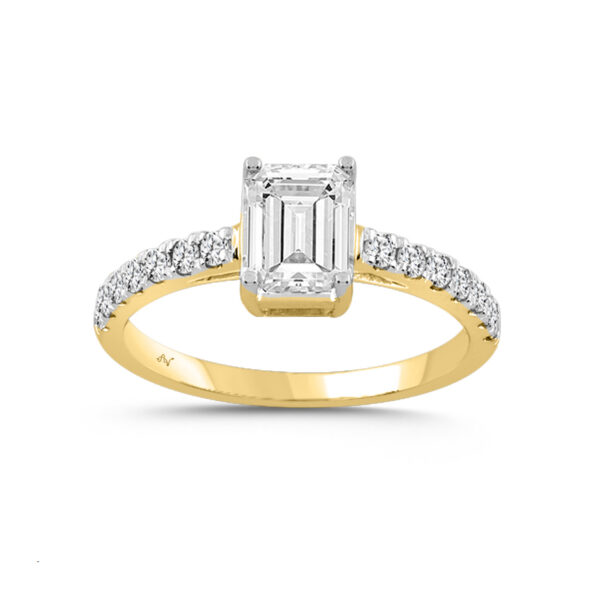 LADIES RING 1.00CT EMERALD/ROUND DIAMOND 14K YELLOW GOLD (CENTER STONE EMERALD DIAMOND-0.75CT)