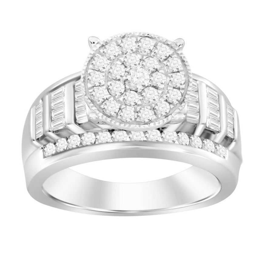 LADIES RING 1.00CT ROUND/BAGUETTE DIAMOND 10K WHITE GOLD