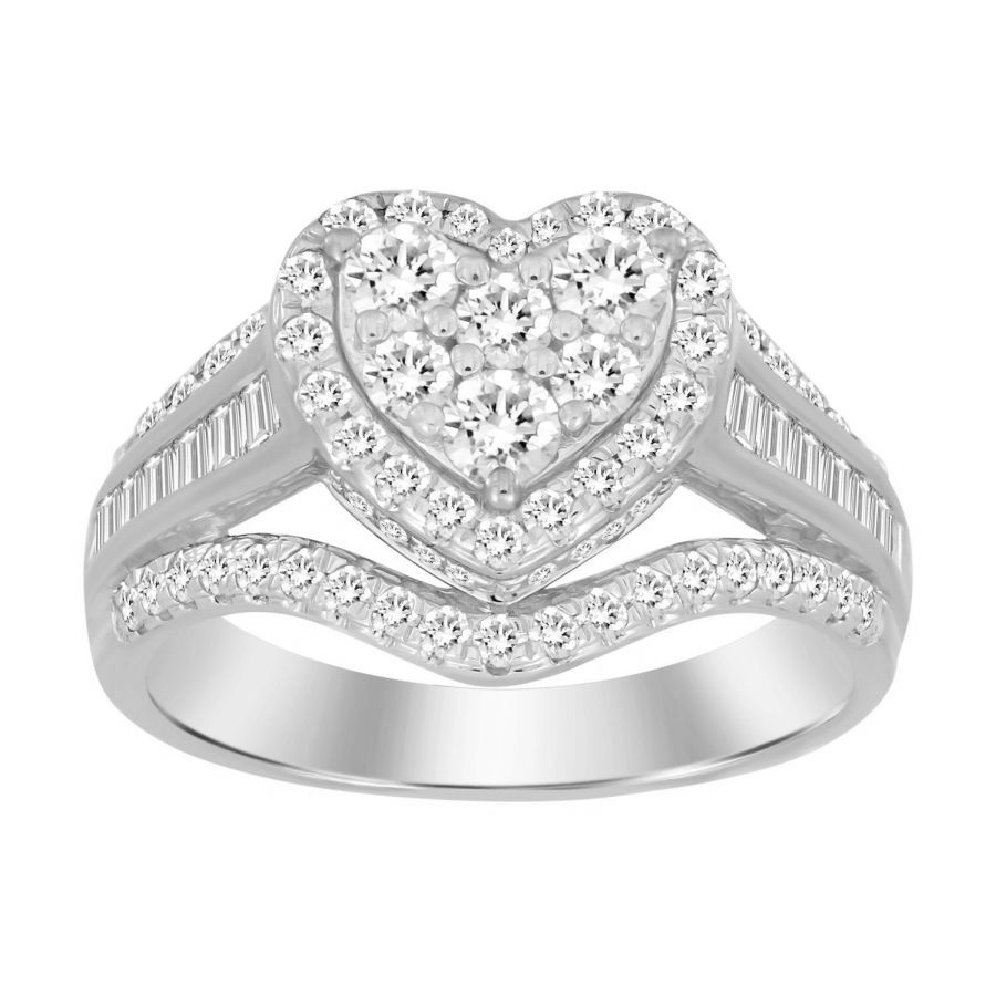 LADIES RING 1.00CT ROUND/BAGUETTE DIAMOND 10K WHITE GOLD