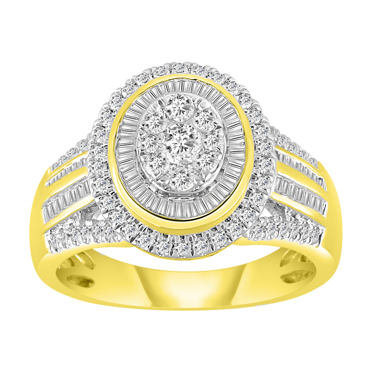 LADIES RING 1.00CT ROUND/BAGUETTE DIAMOND 10K YELLOW GOLD