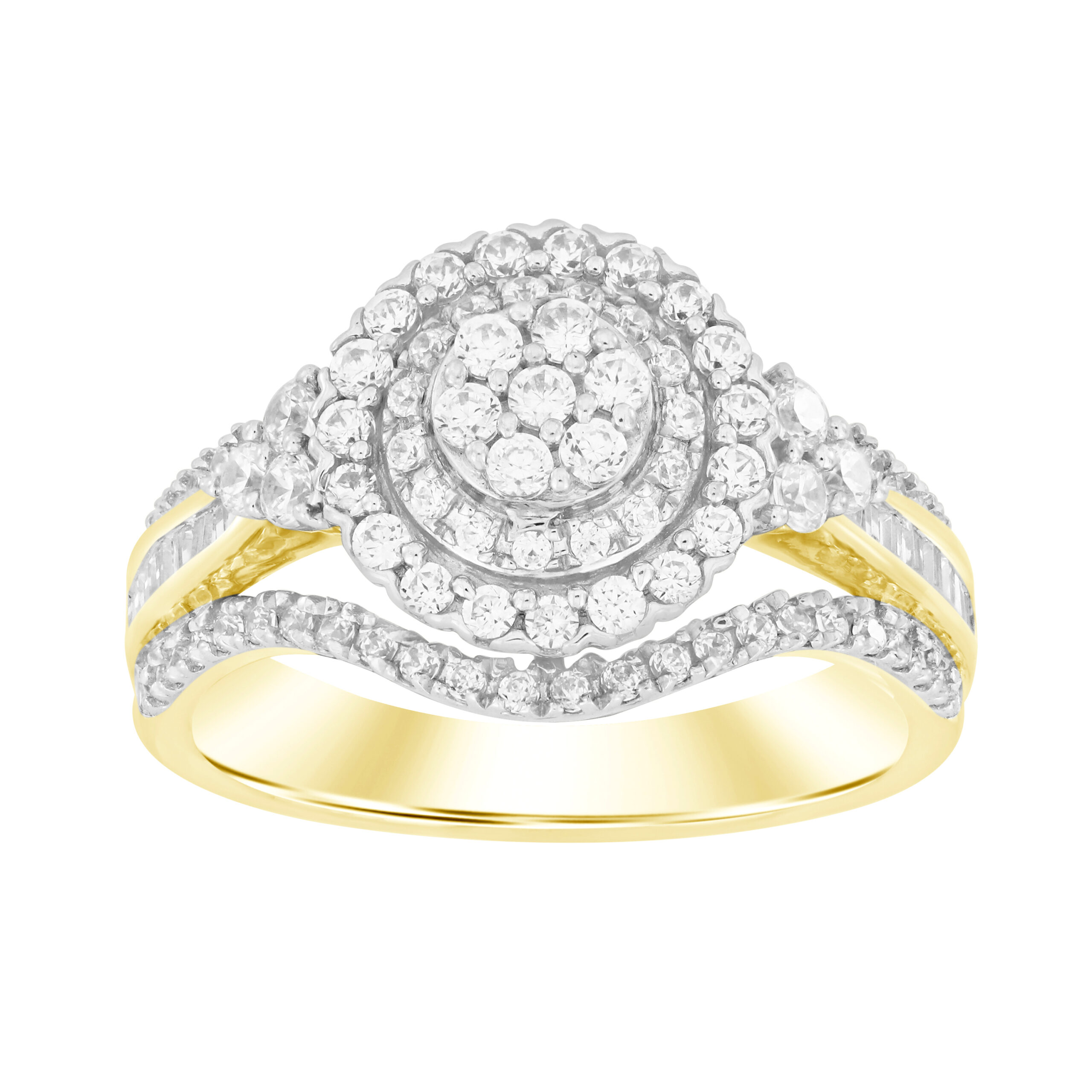 LADIES RING 1.00CT ROUND/BAGUETTE DIAMOND 10K YELLOW GOLD