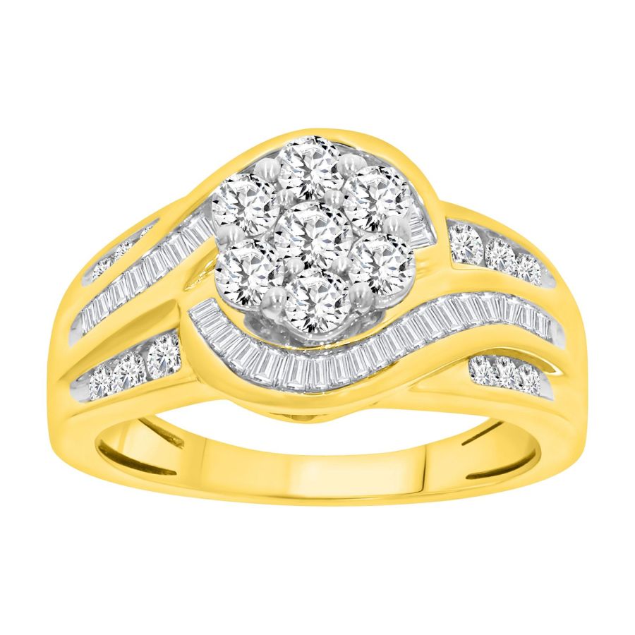 LADIES RING 1.00CT ROUND/BAGUETTE DIAMOND 10K YELLOW GOLD