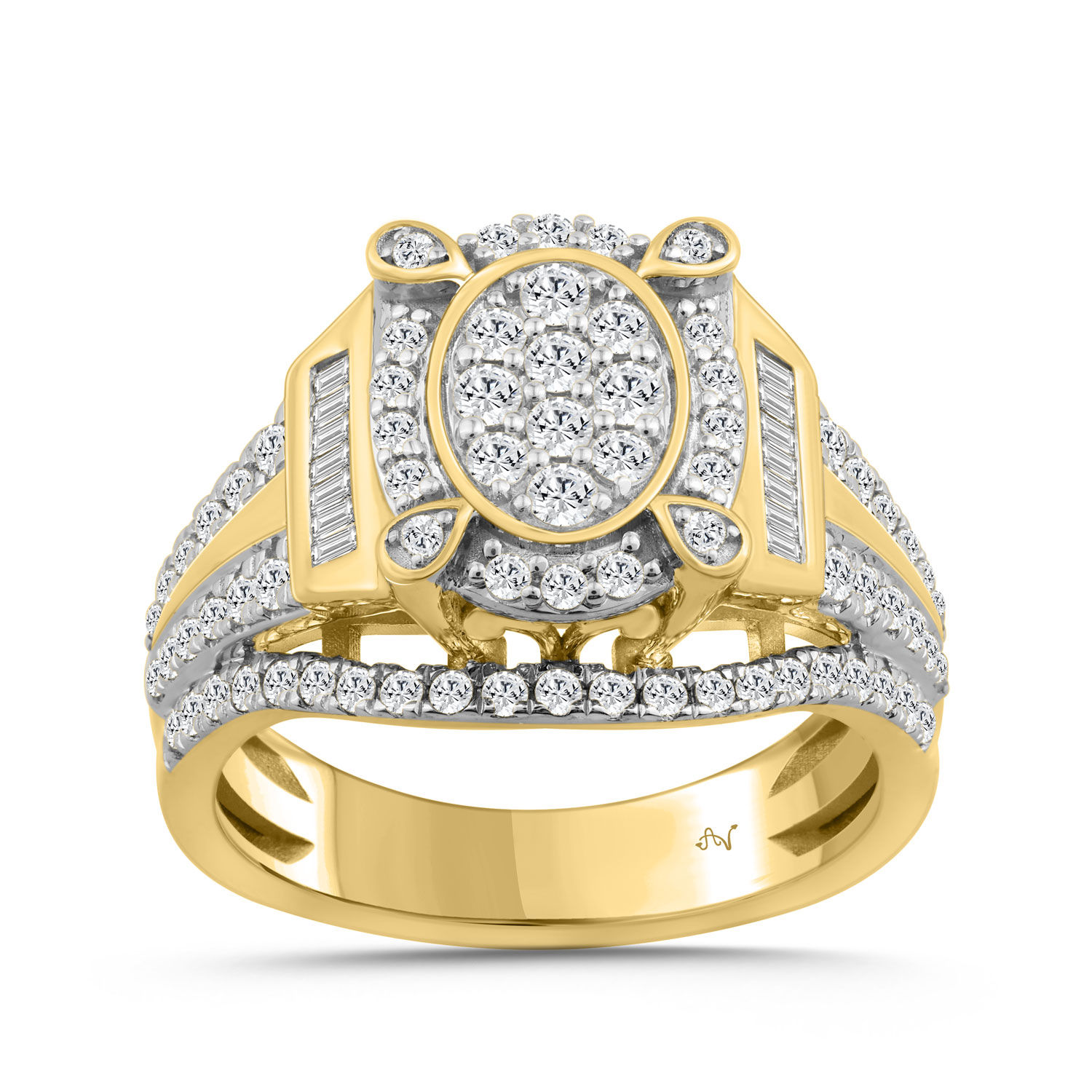 LADIES RING 1.00CT ROUND/BAGUETTE DIAMOND 10K YELLOW GOLD