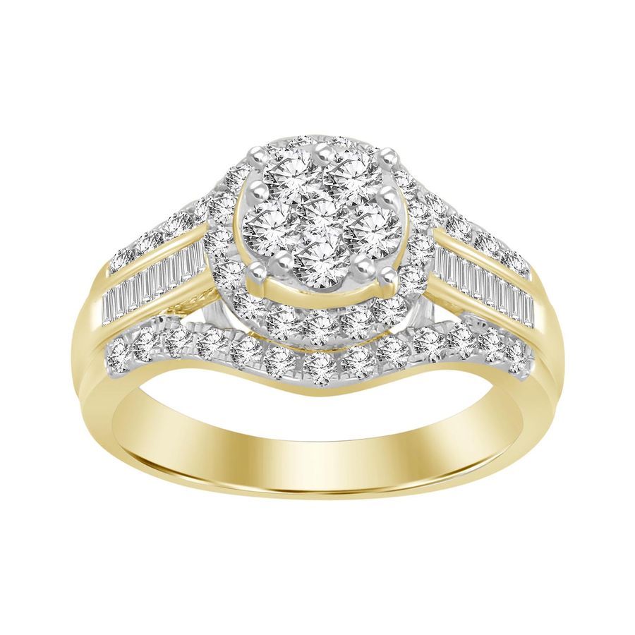 LADIES RING 1.00CT ROUND/BAGUETTE DIAMOND 10K YELLOW GOLD