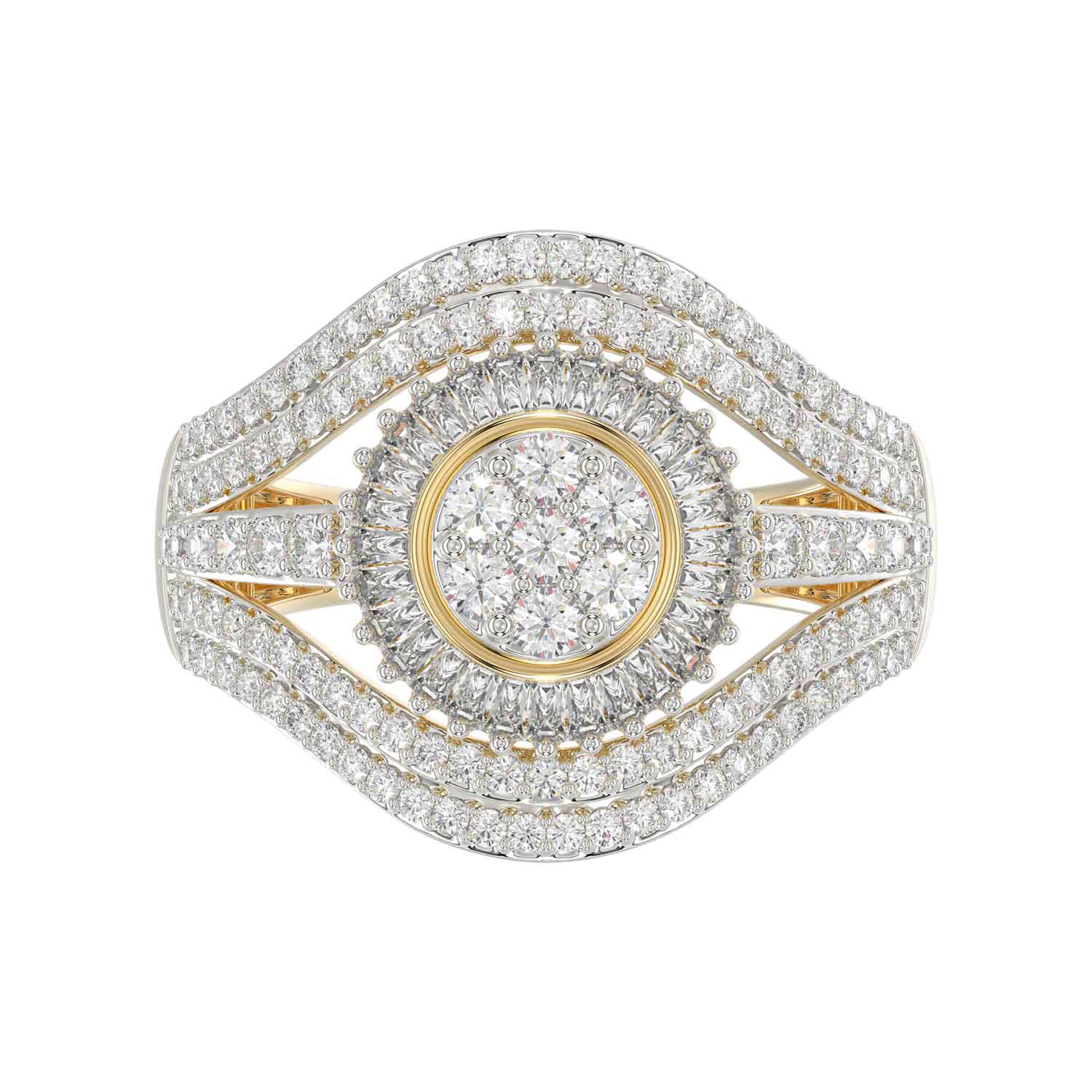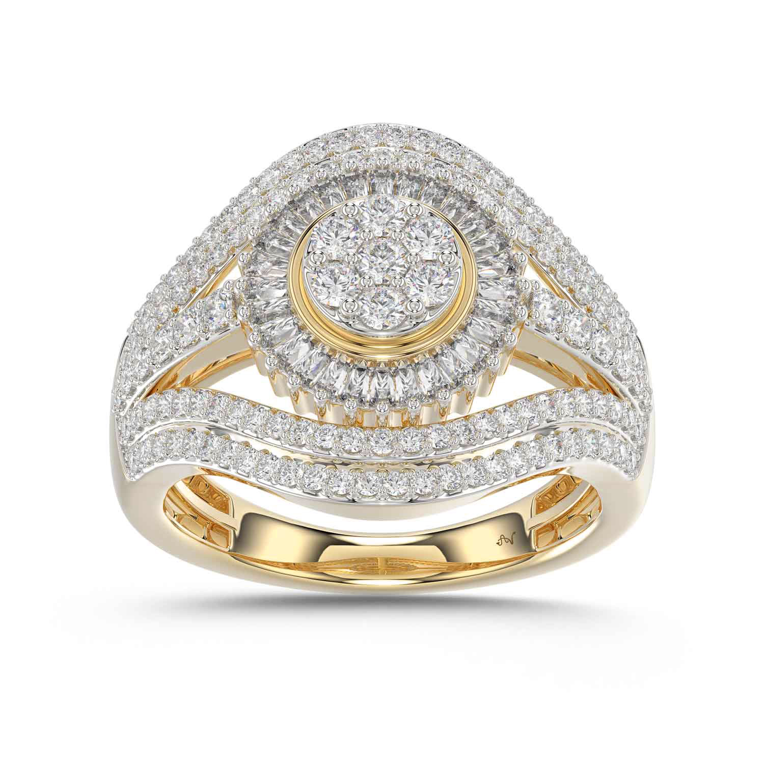 LADIES RING 1.00CT ROUND/BAGUETTE DIAMOND 10K YELLOW GOLD
