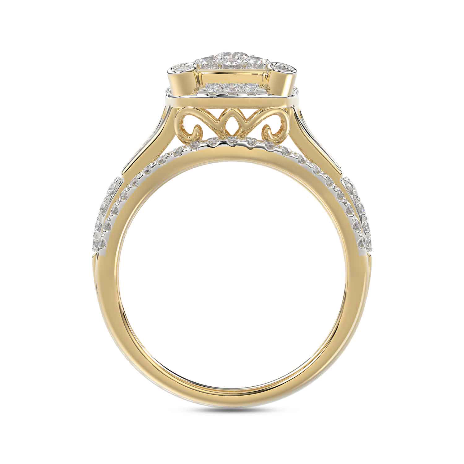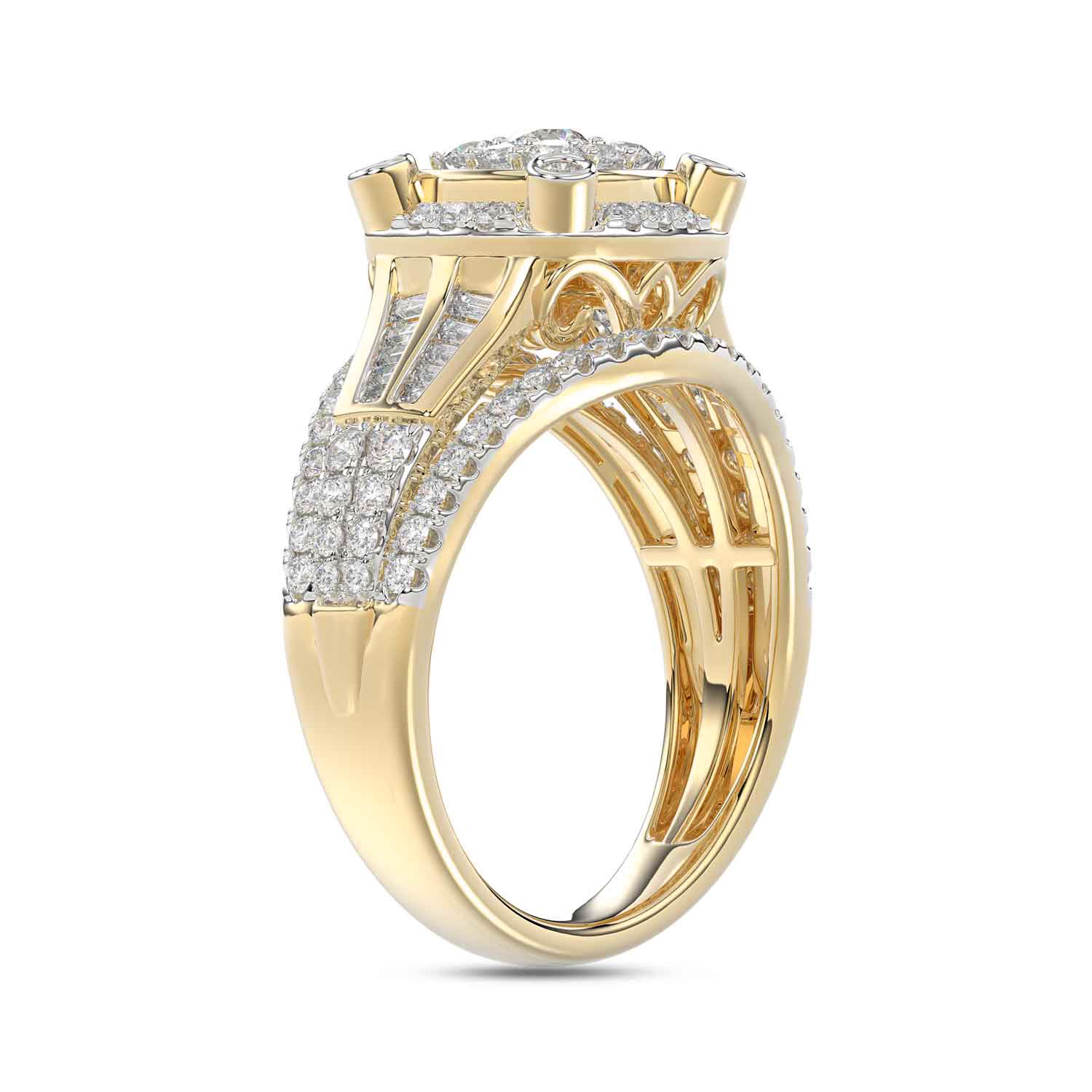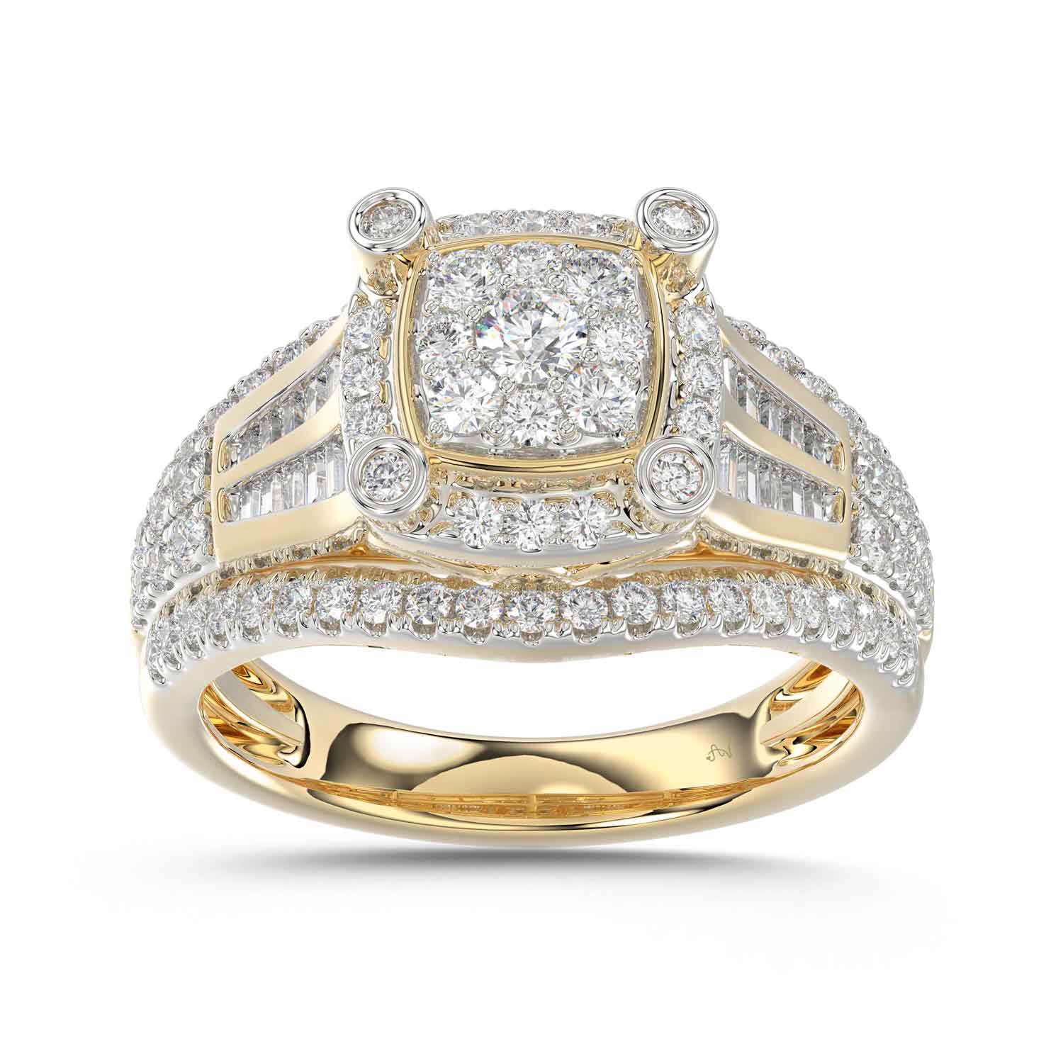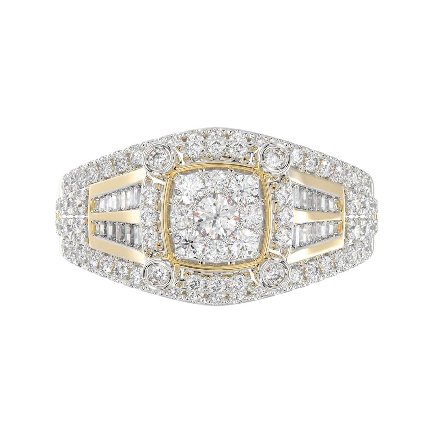 LADIES RING 1.00CT ROUND/BAGUETTE DIAMOND 10K YELLOW GOLD