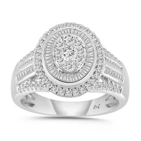 Home Ladies Rings LADIES RING 1.00CT ROUND/BAGUETTE DIAMOND 14K WHITE GOLD