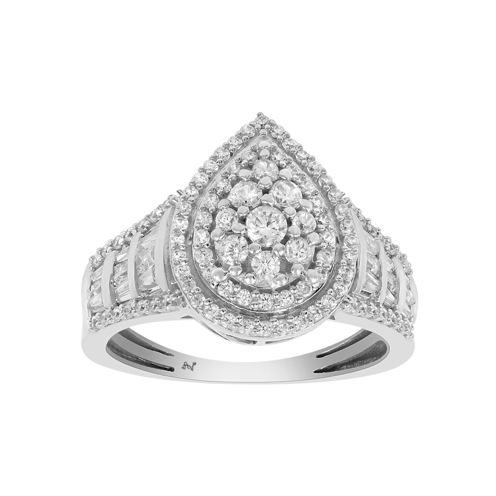 LADIES RING 1.00CT ROUND/BAGUETTE DIAMOND 14K WHITE GOLD