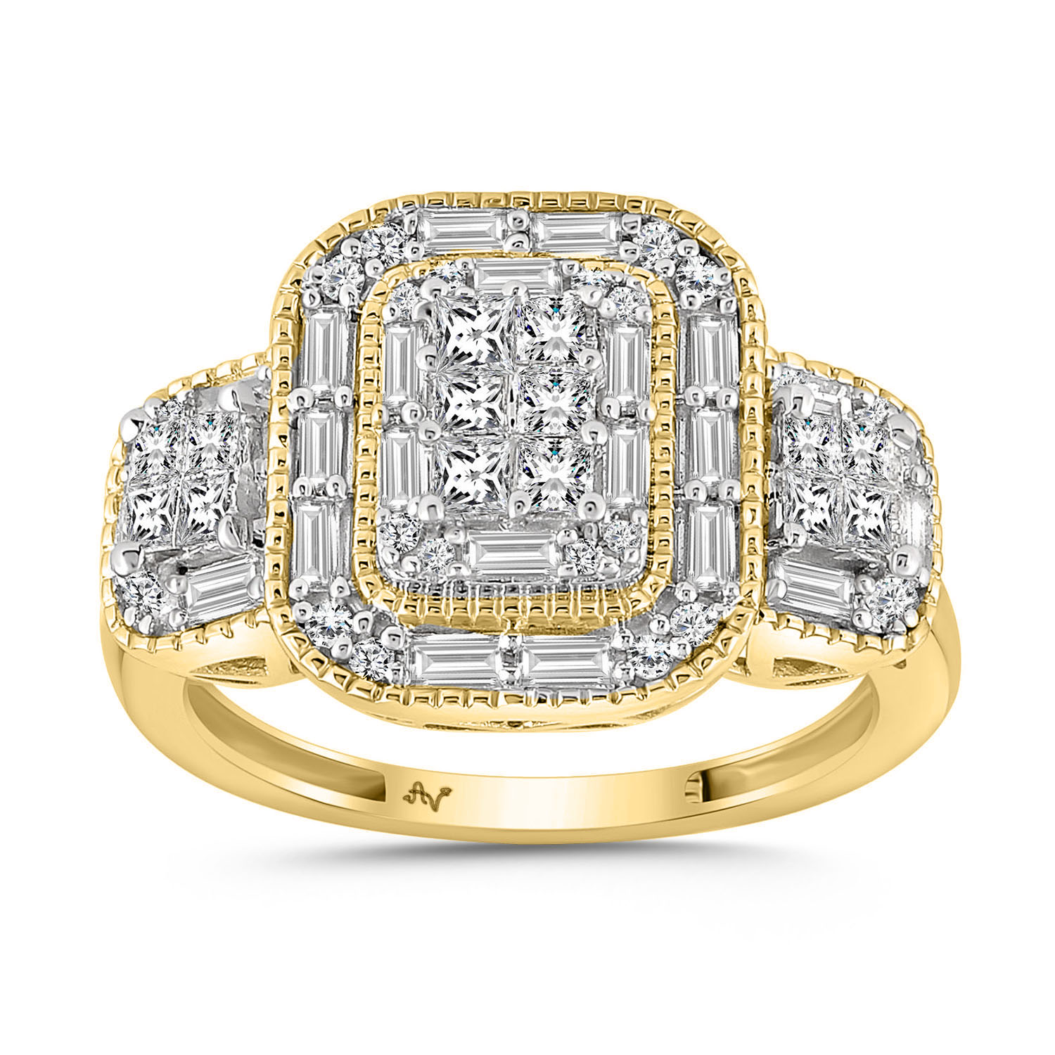 LADIES RING 1.00CT ROUND/BAGUETTE/PRINCESS DIAMOND 14K YELLOW GOLD