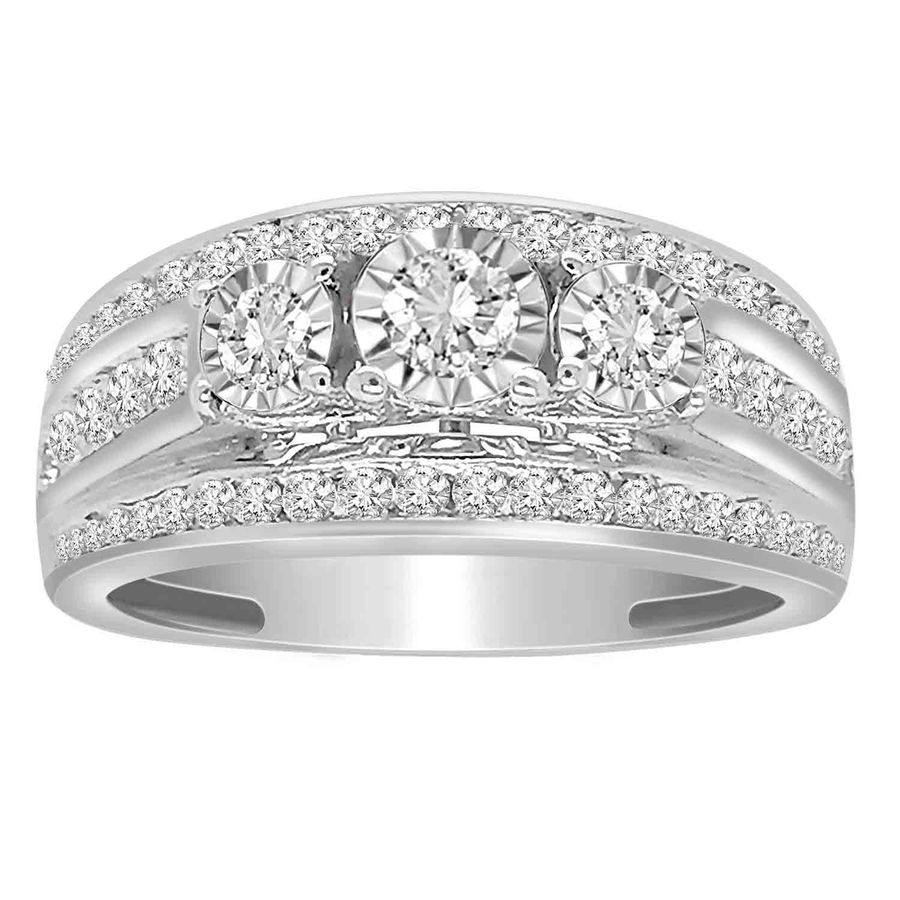 3 STONE LADIES RING 1.00CT ROUND DIAMOND 14K WHITE GOLD $1,329.99