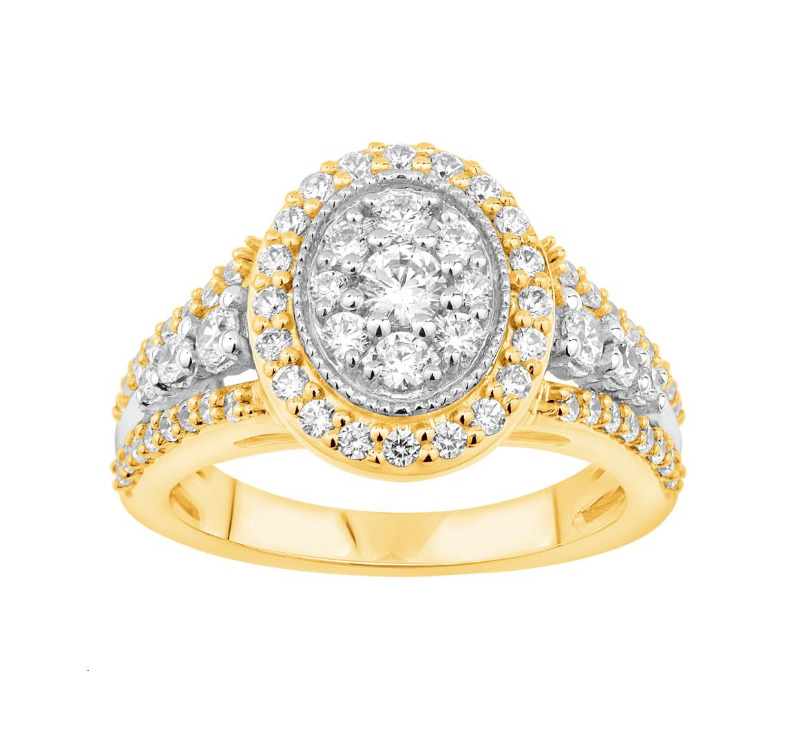 LADIES RING 1.00CT ROUND DIAMOND 10K YELLOW/WHITE GOLD
