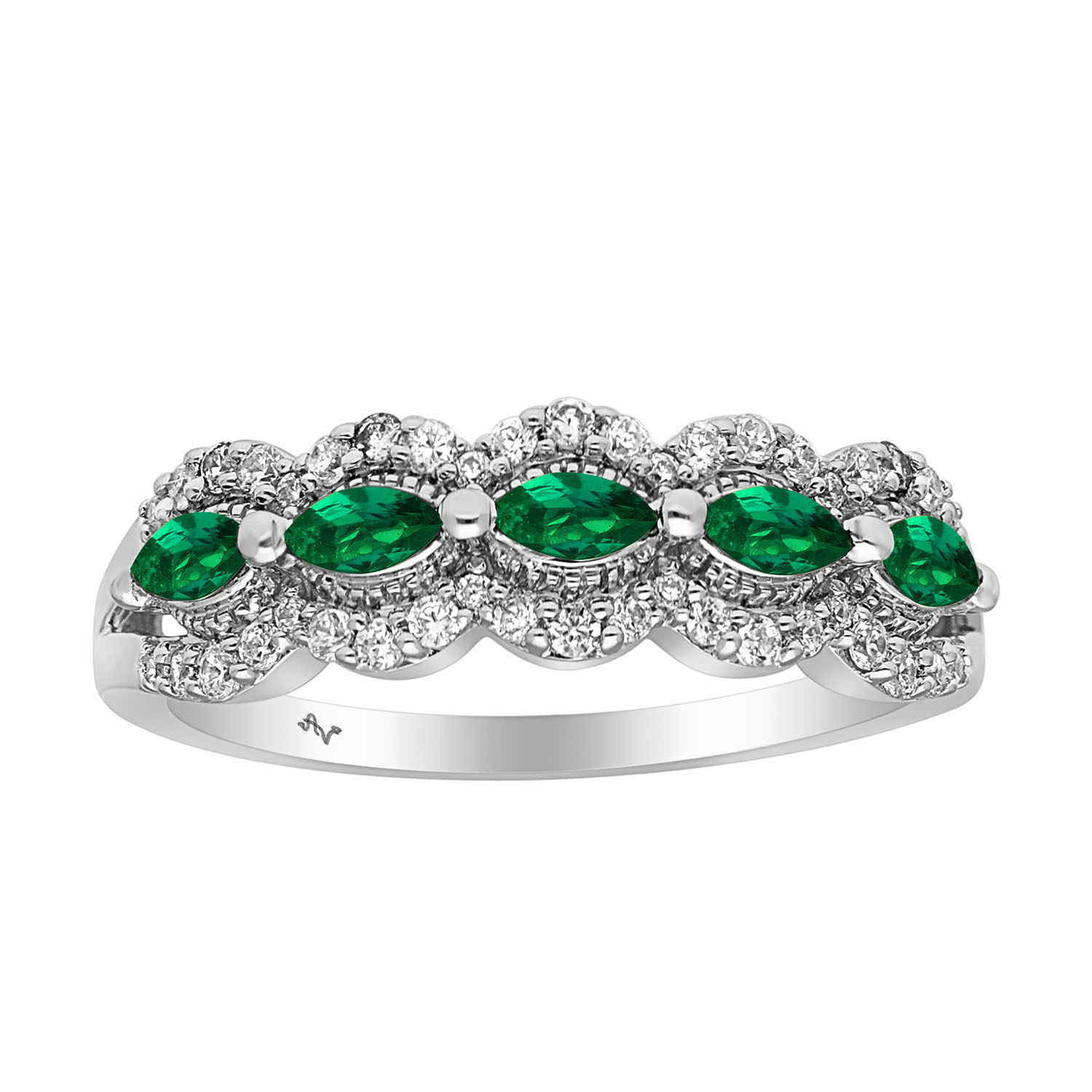 LADIES RING 1.00CT ROUND/EMERALD/MARQUISE DIAMOND 14K WHITE GOLD (CENTER STONE MARQUISE DIAMOND-0.65CT)