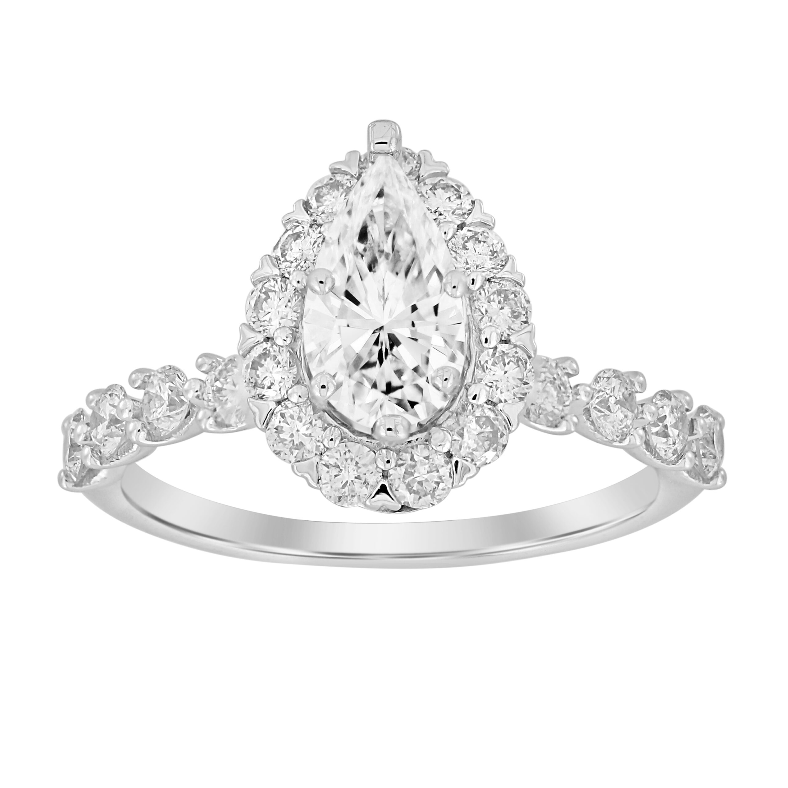 Home Rings LADIES RING 1.00CT ROUND/PEAR DIAMOND 14K WHITE GOLD(SI QUALITY) (CENTER STONE 1 CT PEAR DIAMOND)