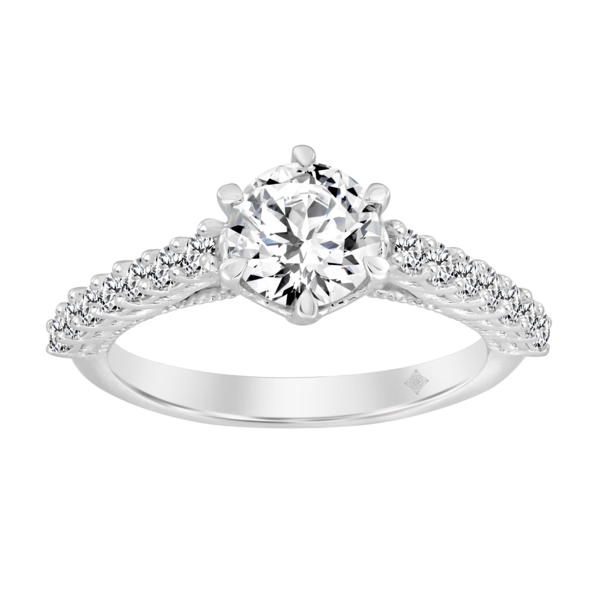 LADIES RING 1 1/2CT ROUND DIAMOND 14K WHITE GOLD (CENTER STONE ROUND DIAMOND 1CT)