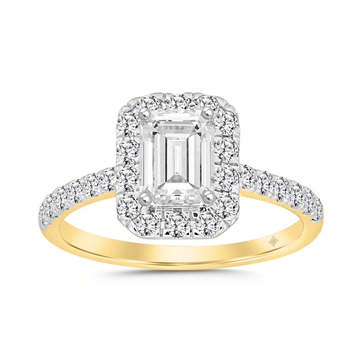 LADIES RING 1 1/2CT ROUND/EMERALD DIAMOND 14K YELLOW GOLD (CENTER STONE EMERALD DIAMOND 1CT) $1,489.99
