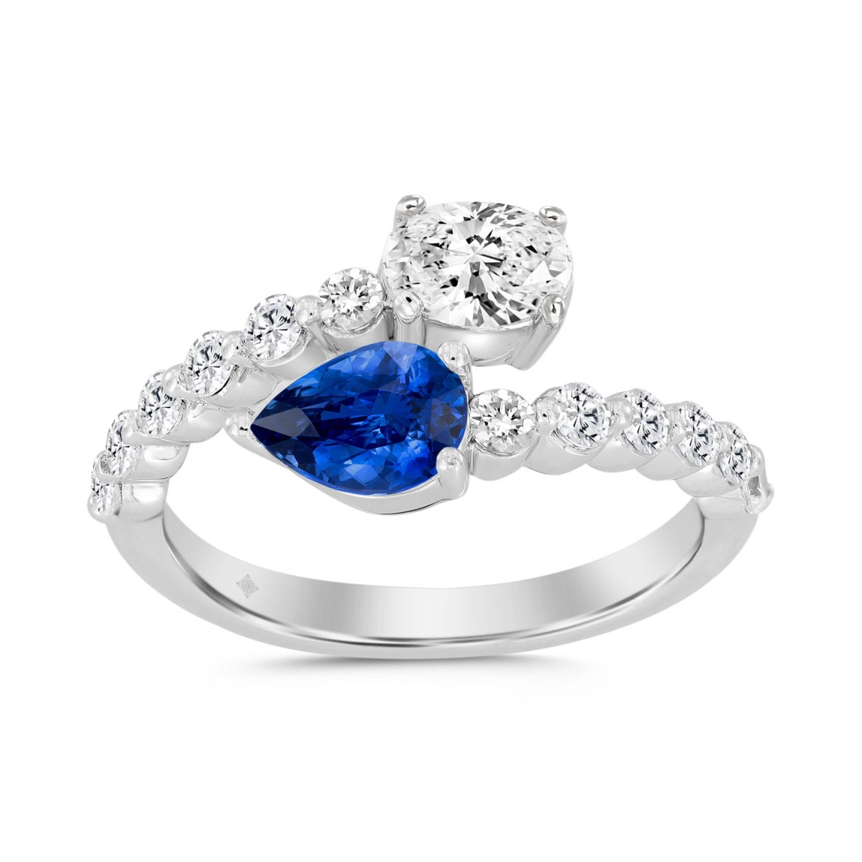 LADIES RING 1 1/2CT ROUND/PEAR BLUE/OVAL DIAMOND 14K WHITE GOLD