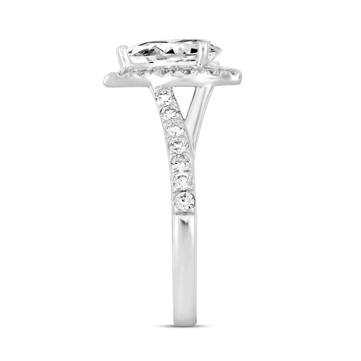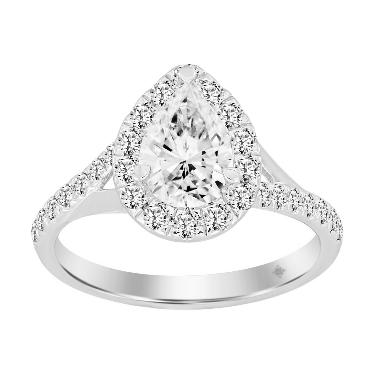 LADIES RING 1 1/2CT ROUND/PEAR DIAMOND 14K WHITE GOLD (CENTER STONE PEAR DIAMOND 1CT)