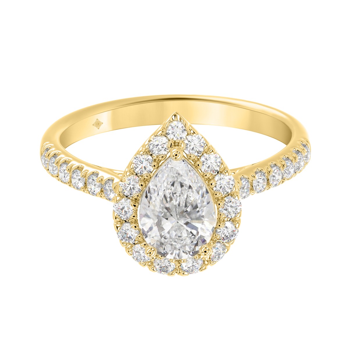 LADIES RING 1 1/2CT ROUND/PEAR DIAMOND 14K YELLOW GOLD (CENTER STONE PEAR DIAMOND 1CT)